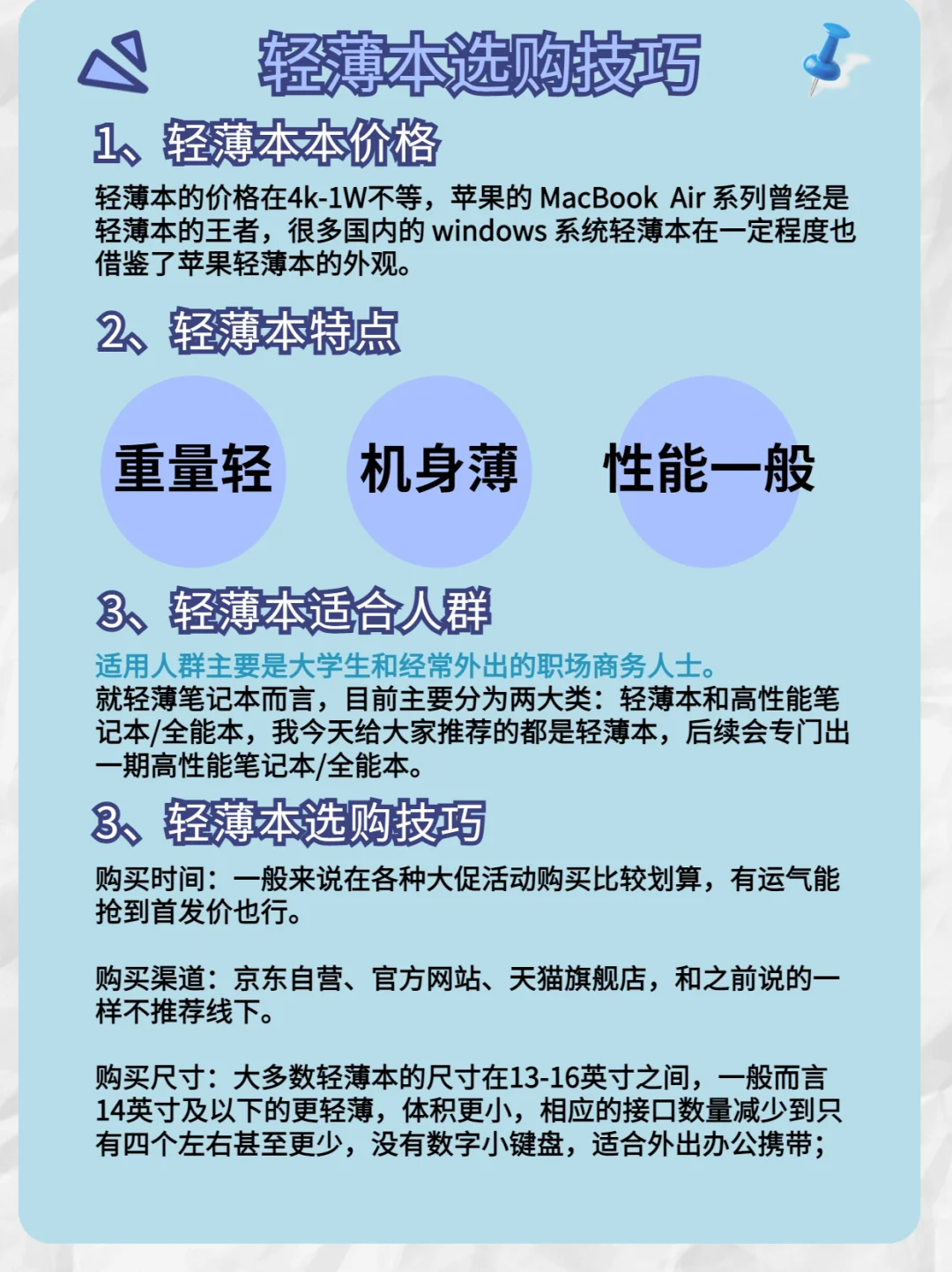 大家好,我是,双十一很多粉丝咨询轻薄本选购技巧,在此安排一波~ 主要分享了 4⃣️ 点选购小技巧,详细看图哈,有不懂内容可以问我,希望可以帮助到大家。最新的轻薄本内容会发在新笔记,也可以到新笔记下提问。