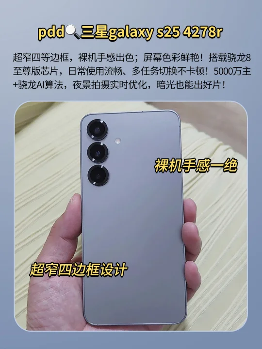 配备超窄四等边框,裸机手感出色;屏幕色彩鲜艳!搭载骁龙8至尊版芯片,日常使用流畅、多任务切换不卡顿!5000万像素+骁龙AI算法,夜景拍摄实时优化细节,暗光也能出好片!