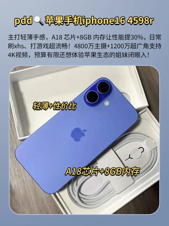 1️⃣pdd🔍苹果手机iphone16 4598r
