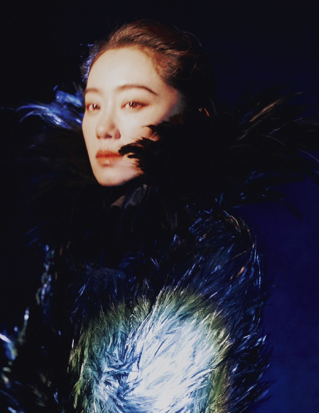 张小斐 魅魔 张小斐穿重工黑羽高定,有哥特式暗黑的感觉,眼神锐利又带魅惑,像冷艳女王。