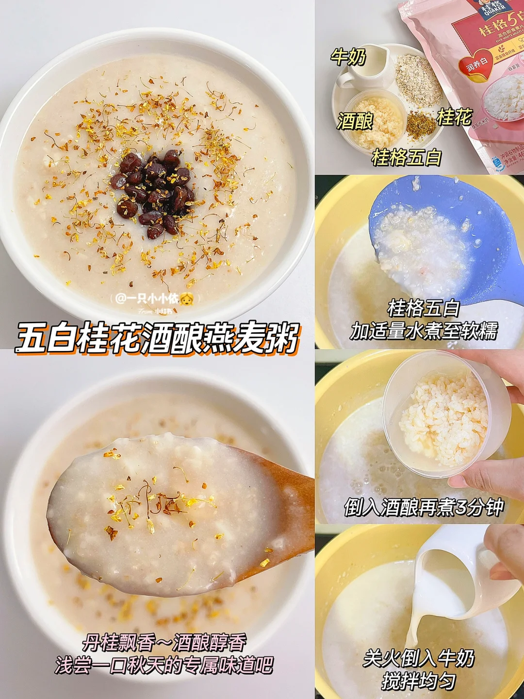 🔹步骤:桂格五白加适量水煮至软糯;倒入酒酿再煮3分钟;关火倒入牛奶,搅拌均匀