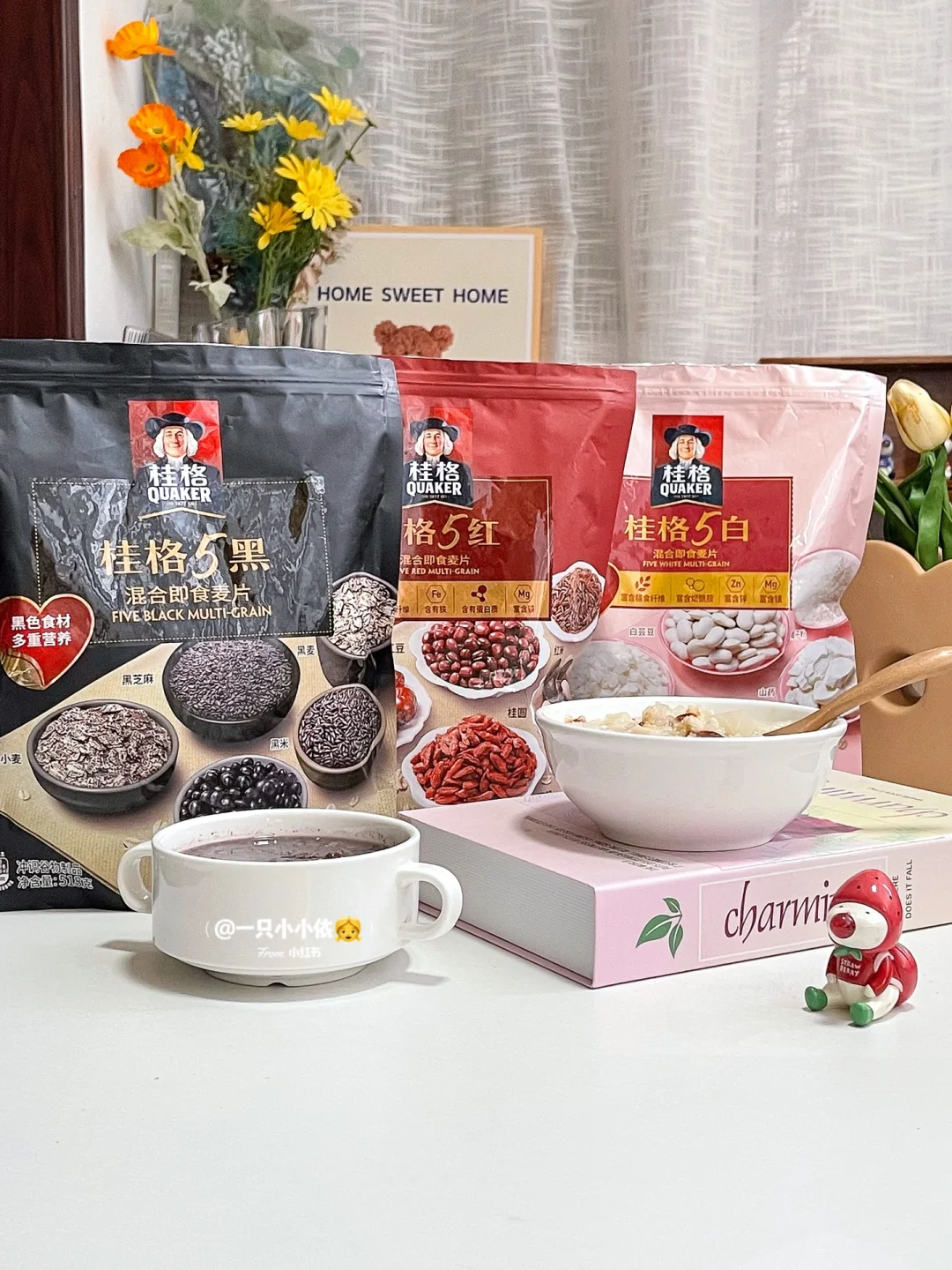 👭姐妹们不仅要多吃黑色食材,同系列的桂格五白、桂格五红也可以冲一波哦🏃♀️我同事都被我安利了一波!新出的桂格五白还是椰子味的巨香,椰子脑袋真的要尝试一下哦👏🏻