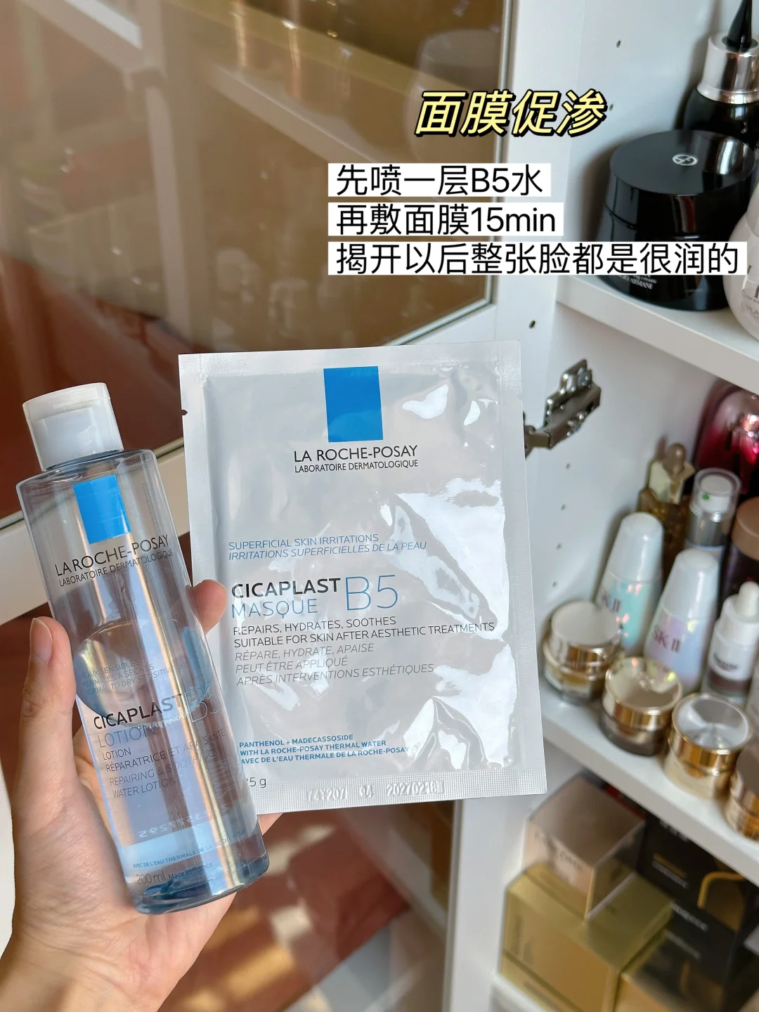 脸皮有点干有点红的时候我就用这俩,先喷一层B5水,再敷B5面膜15min,可以强力补水、快速舒缓皮肤,揭开以后整张脸都是又润又嫩,后续皮肤状态也稳定很多