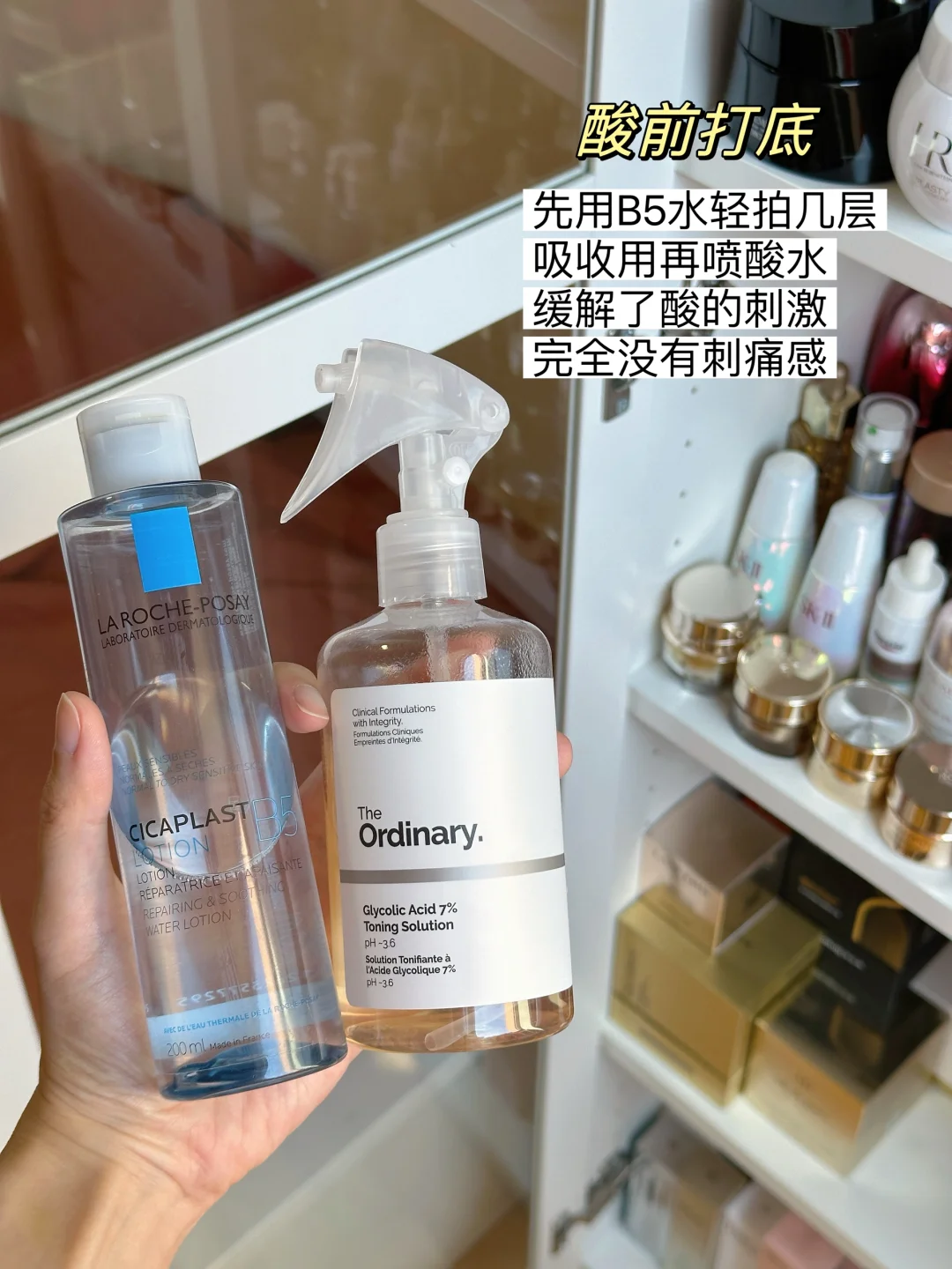 酸很适合用来改善闭口痘痘,但单独用会过猛,容易刺激皮肤,可以在用酸前先拍几层B5水,既可以稳住皮肤底子又可以中和酸的刺激,刷酸不怕红脸刺痛