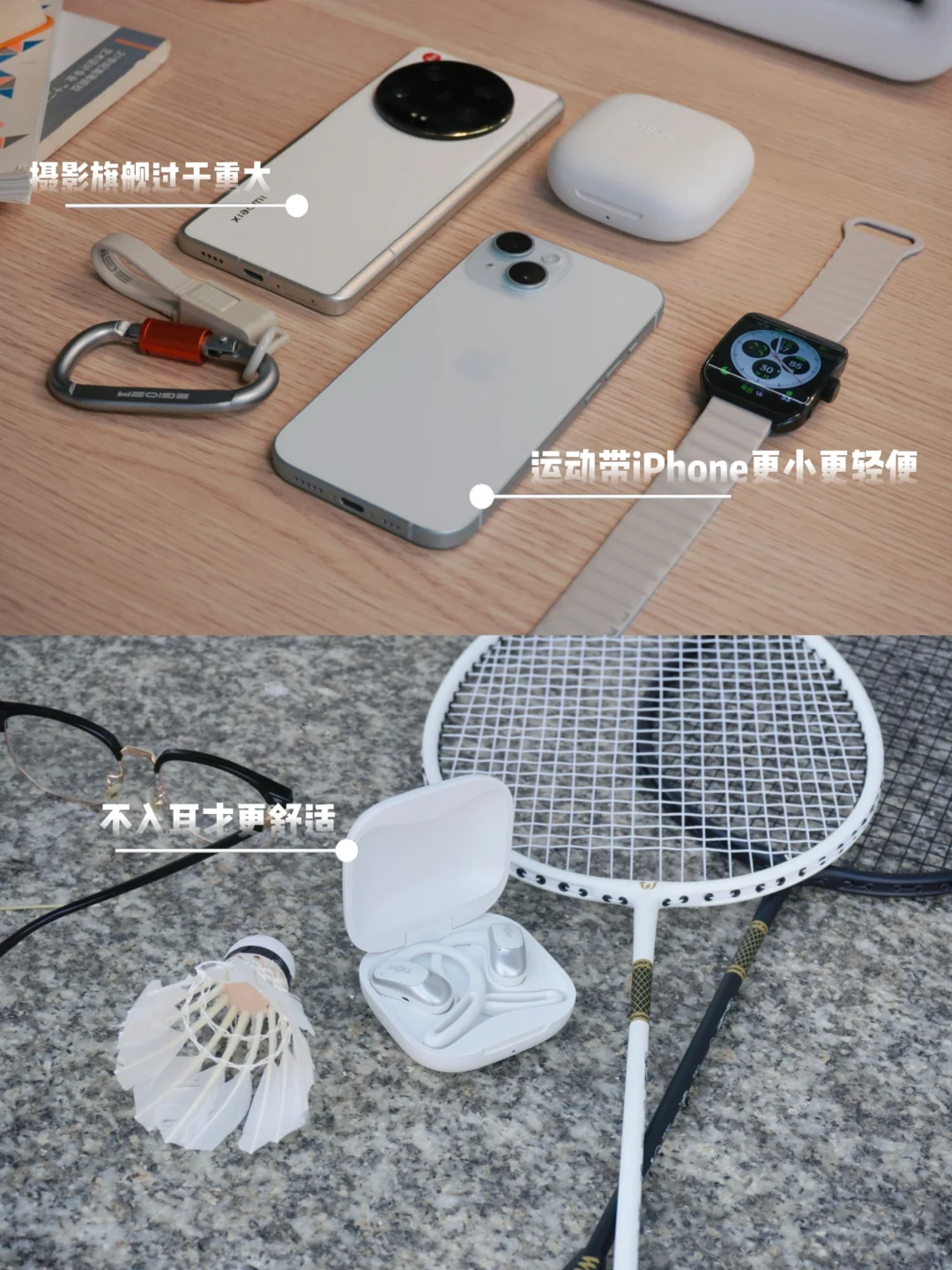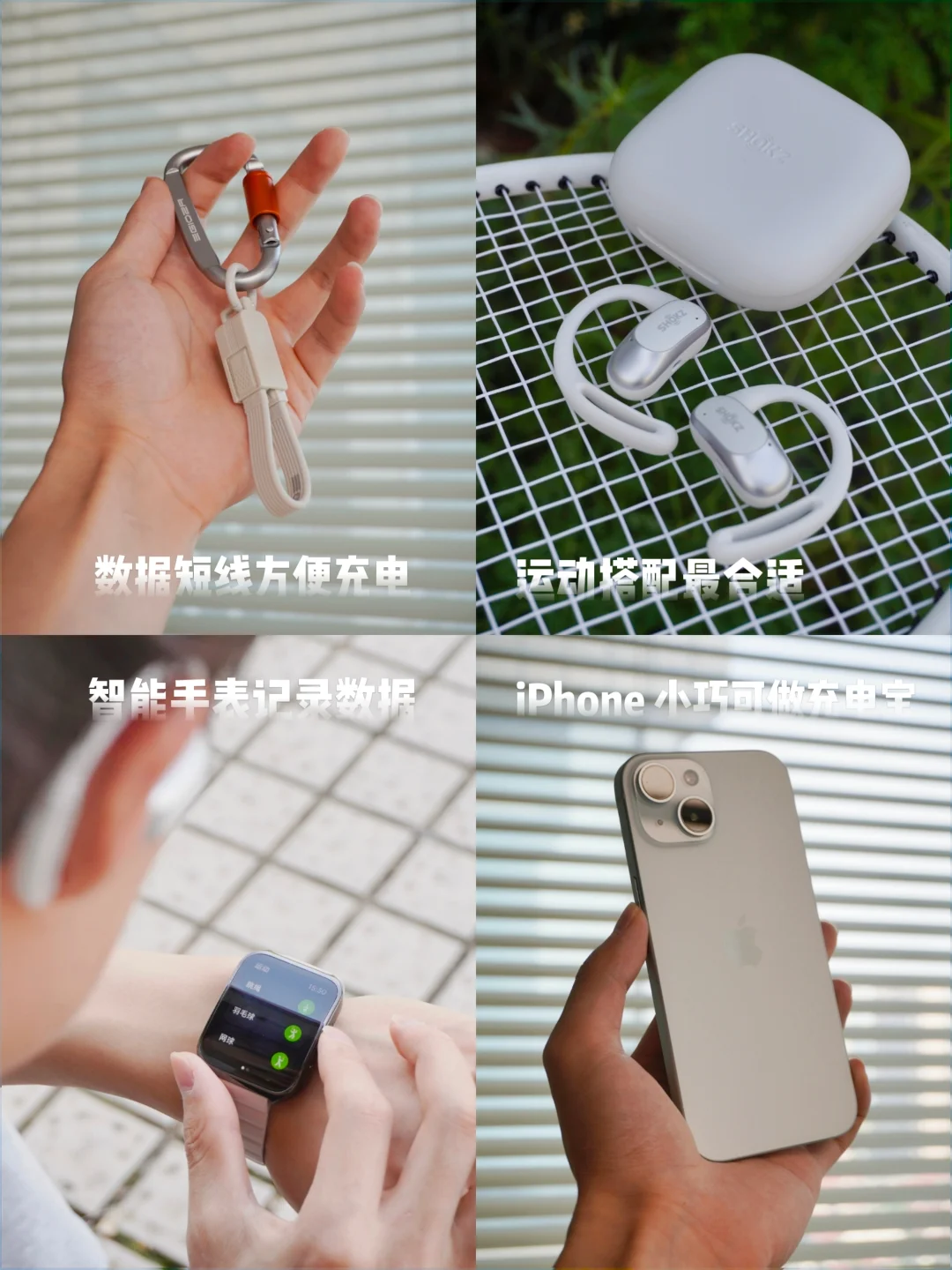 🏠虽然一直打着宅男的标签,但是作为间歇性健身爱好者,以及爱健康人士,平时还是经常出去运动的。但是一般出行运动也就不像是日常带太多设备了。 . 🎵运动不听歌,乐趣少一半,所以耳机一直是必备品,相比于传统的入耳式耳机,我觉得像是韶音OpenFit Air这一种不入耳挂式耳机才更适合运动佩戴。 ①挂耳式结构,稳固不易甩掉。像是我平时打羽毛球这一种需要跑跳幅度很大的情况,耳机都不会出现松动。 ②开放式设计,耳道清爽透气。没有入耳式那种汗水侵湿的油腻感,而且材质软弹亲肤,单耳仅8.7g的重量,佩戴也更轻松舒适。 ③能兼顾环境音。运动过程还是要在意周围环境的,戴开放式耳机更安全,与朋友沟通也顺畅。 ④外出使用28h长续航基本不用当心没电,就算是忘记充电,充电10分钟就能再用2小时也没有续航焦虑。 ⑤刚刚开始选择韶音最重要还是因为身边的人基本都是在使用这个品牌,深耕开放式耳机多年,消费者也会用选择去证明产品品质。 . ⌚一般在家附近运动,一块带移动网络的智能手表搭配运动耳机就可以了,用手表听歌,记录运动数据都很方便。 . 🤳但是在远一点地方还是得考虑带手机,相比于半斤的摄影旗舰,我更喜欢带上小15,尺寸小巧轻便,应对一些在外需要手机的场景,而且iPhone的及时记录也比安卓好一点,更适合运动。 . 🔋出行在外带一根ctoc的数据线也是习惯,像是有时候耳机忘记充电,直接用iPhone给耳机补能就行。 . 夏日炎炎,除了宅家和西瓜汽水,也不要忘记在凉爽的午后补充一下运动,享受运动和音乐带来的多巴胺。 .