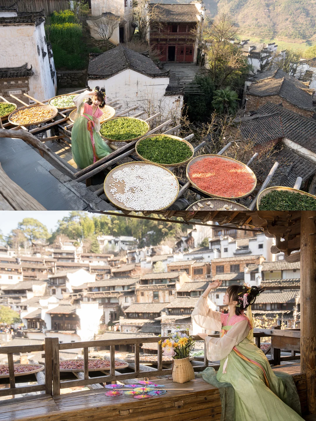 ⭐️早上先看梯田花海,下午漫步天街,欣赏古色古香的徽派建筑和春日晒秋,一条线路解锁篁岭所有的春日美景