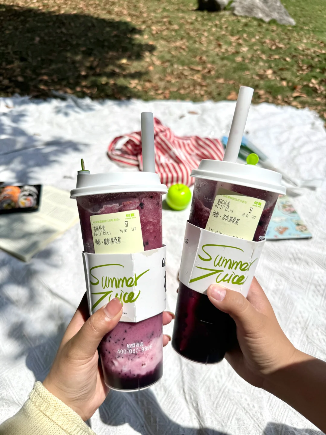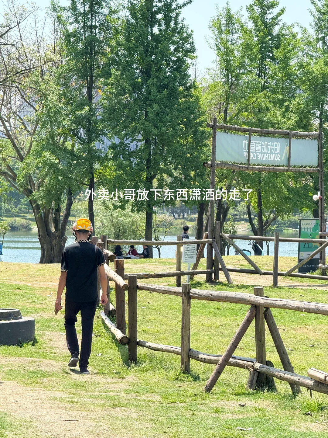 在公园点外卖可以送到草坪,然后骑手小哥直接送到面前,就可以开吃了!