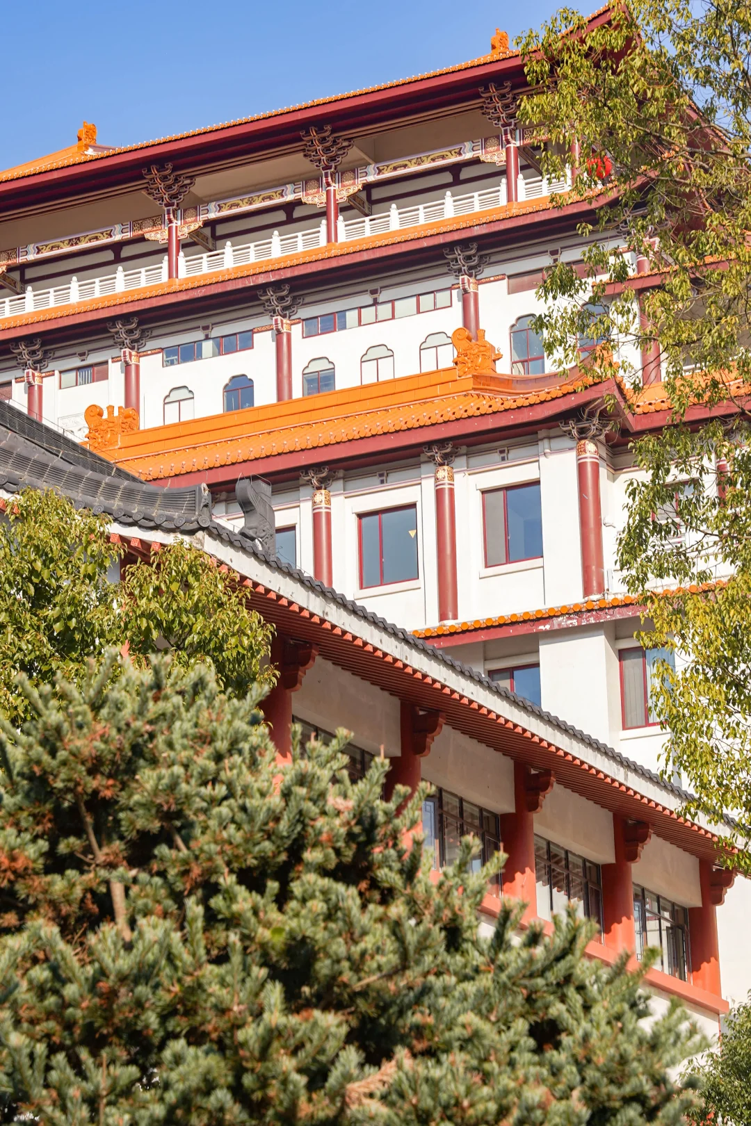 ✨ 在宜兴发现一座建在半山腰的绝美寺庙 白墙金顶依山而建 恍惚间以为到了西藏 这里香火免费/停车免费/抄经免费 连佛前求签都免费❗️ 📍 导航定位:佛光祖庭大觉寺(宜兴西渚镇) 🚗 交通建议:自驾最方便,上海/南京出发约2h ⏰ 开放时间:8:30-17:00(16:30停止入场) 🔥 必打卡攻略: 1️⃣「空中布达拉」观音殿 ✅ 全景机位:站在大雄宝殿前广场仰拍 ✅ 光影时刻:下午3-4点阳光斜照金顶巨神圣 ✅ 隐藏玩法:观音殿二楼美术馆有禅意书画展,穿汉服/素色长裙更出片 2️⃣ 佛系体验三件套 ▫️免费抄经(观音殿侧殿) ▫️求签解惑(大雄宝殿签筒自取) ▫️喝咖啡(20r一杯) 🍜 佛门美食指南: ✔️滴水坊素面(15r):菌菇汤底鲜掉眉毛 ✔️素斋盒饭(25r):10+种时蔬吃到撑 ✔️隐藏菜单:提前1天预约可体验精致素宴 📸 周边游玩推荐:出寺庙对面还有云湖风景区,风景宜人优美,适合散步闲逛 🌟 亲测真实体验: 原本冲着"小布达拉宫"的名号来 结果被这里的禅意美学彻底治愈 没有商业香火摊 只有檐角风铃叮当 宜兴人果然会藏宝啊!!