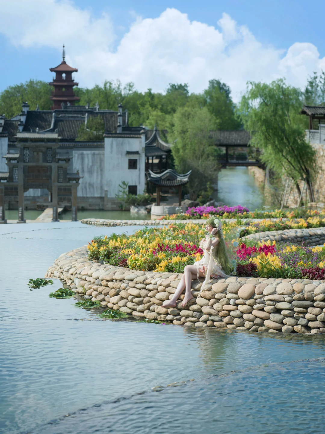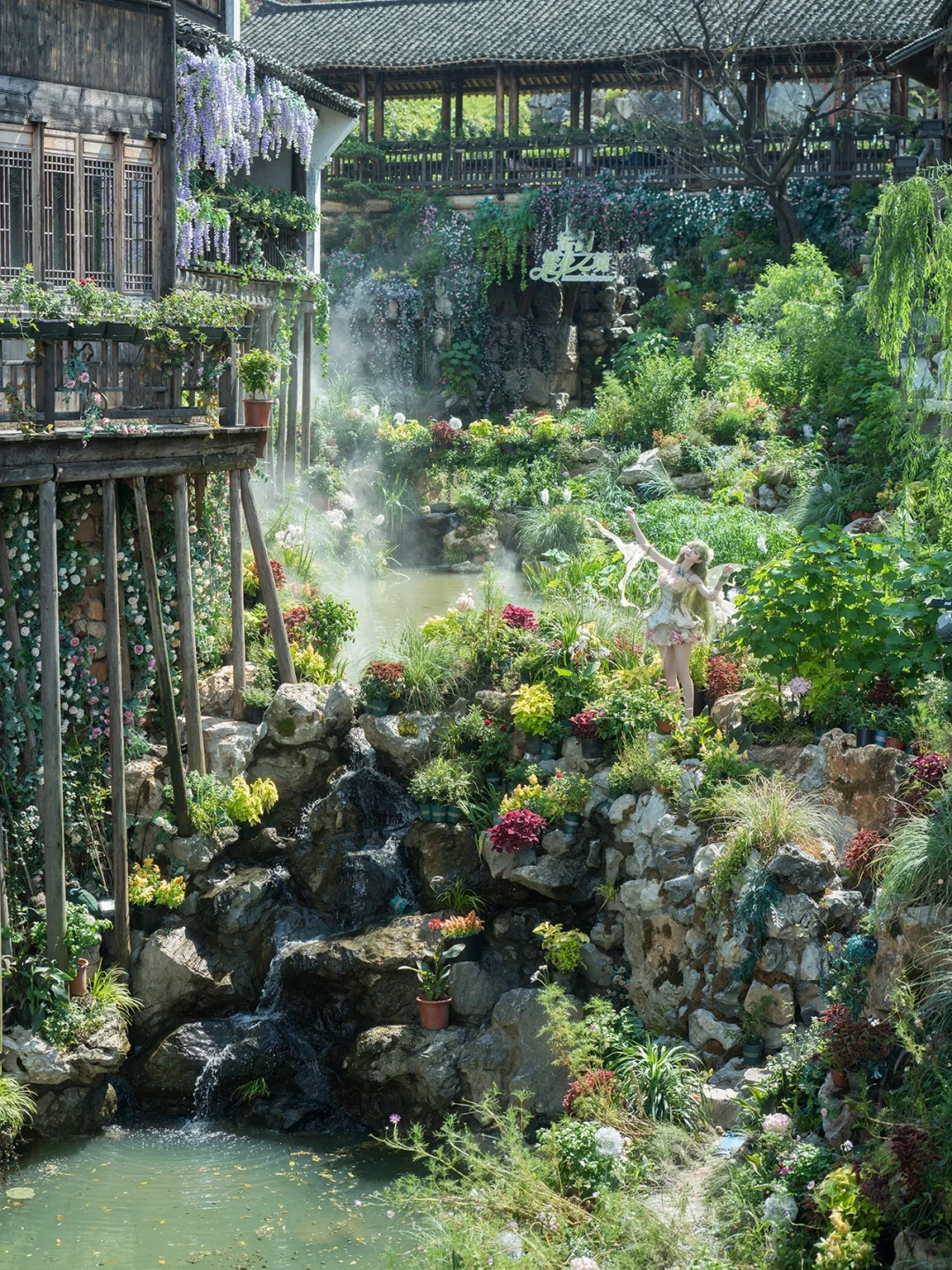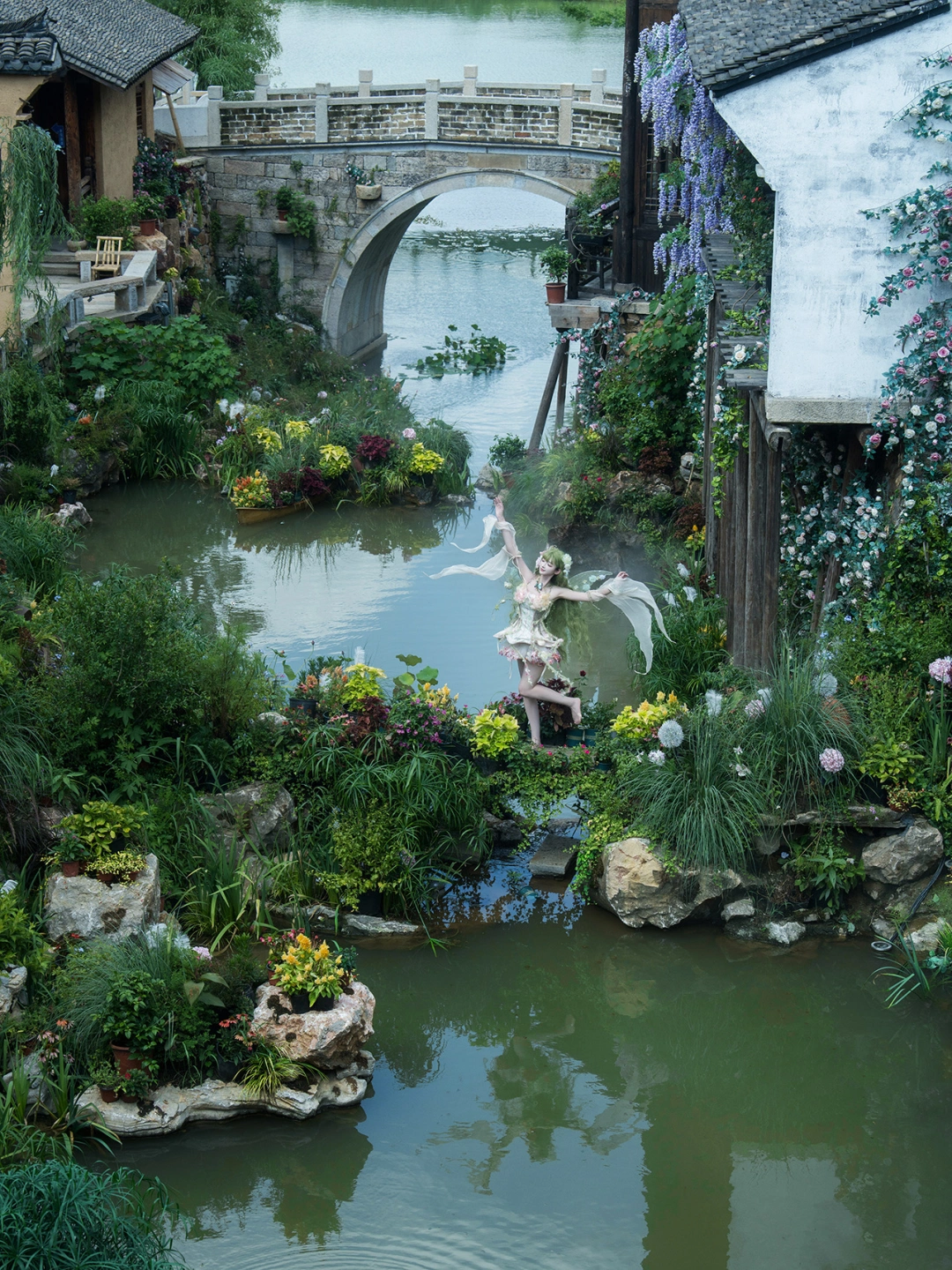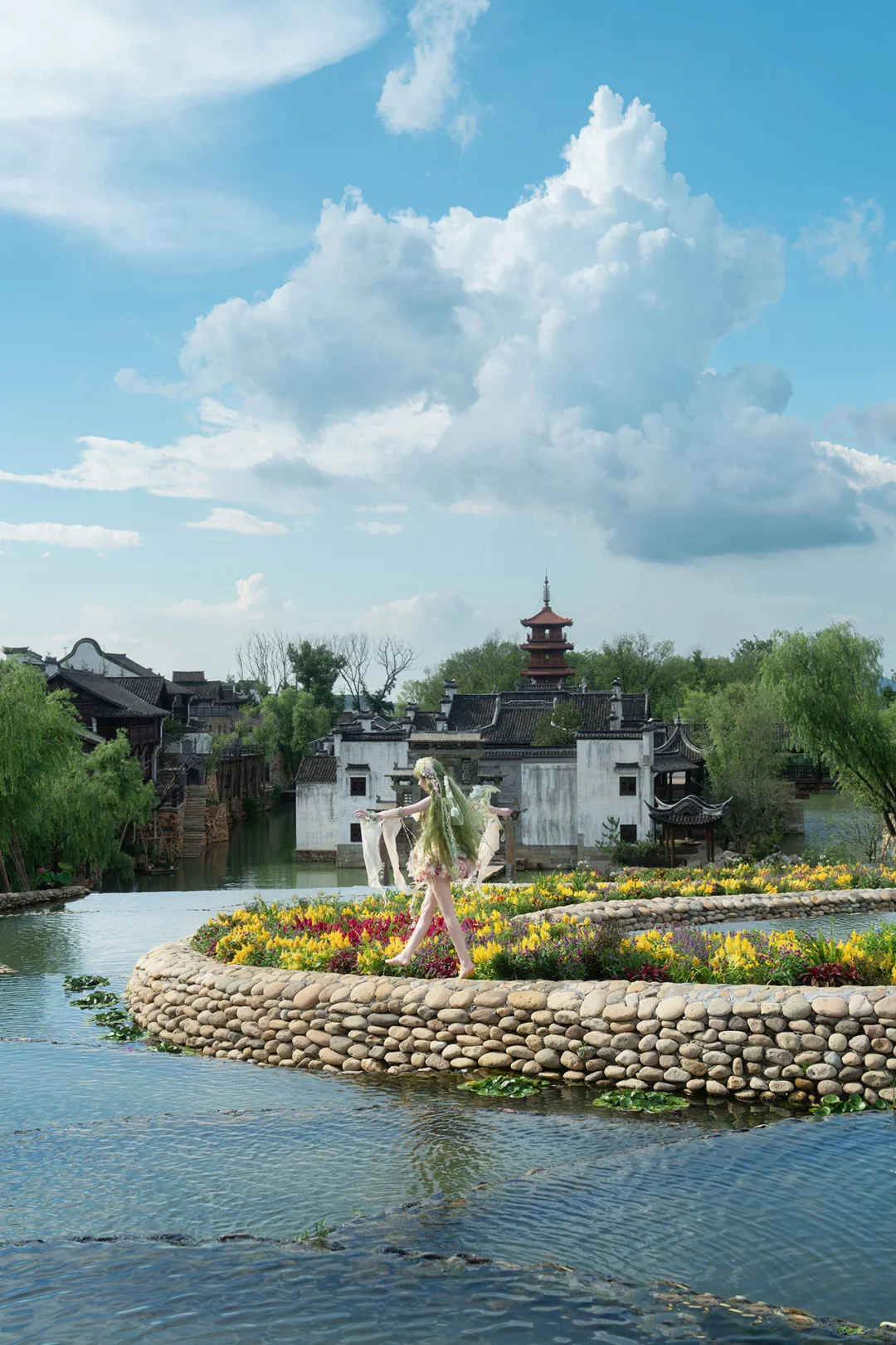 在窑湖小镇发现了一个超美的蓝色晶溪 💎 偶遇了小花仙 也太可爱了吧~