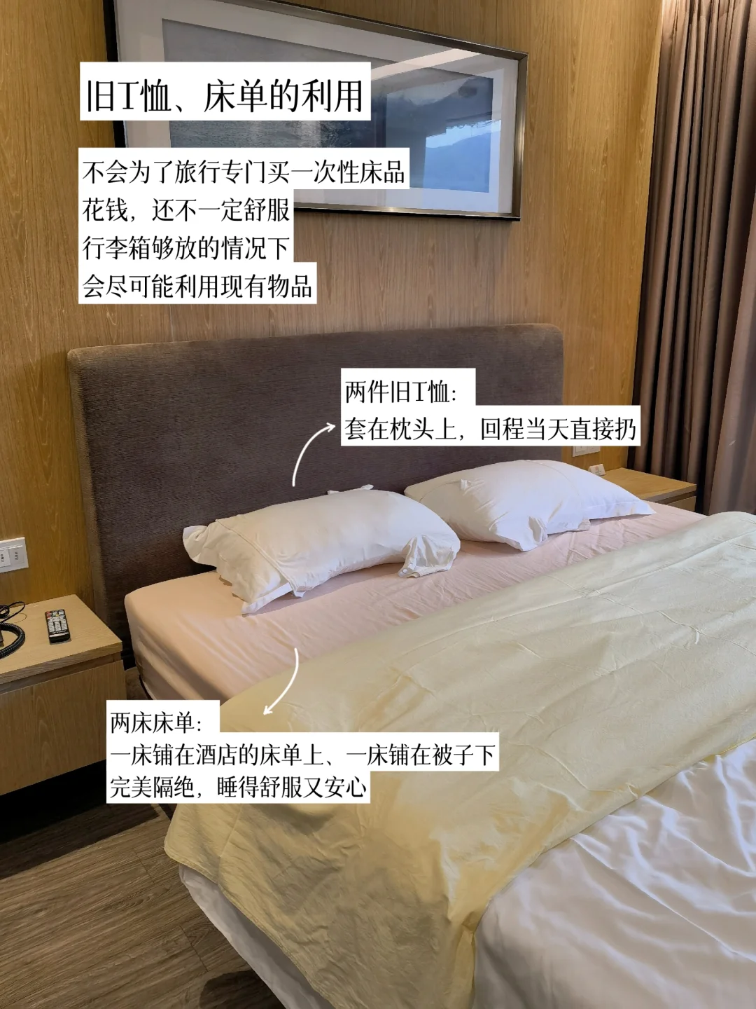 床单一床铺在酒店的床单上、一床铺在被子下,完美隔绝,睡得舒服又安心