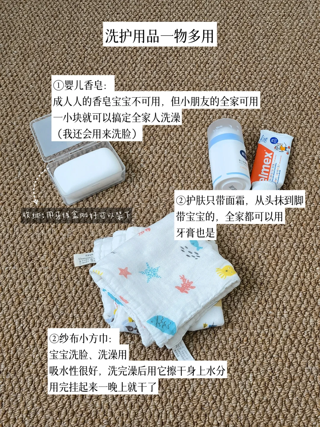 旅行,尤其是带着娃,不会为了精简而刻意少带物品,也不会设想“可能会用到”而什么都带上,兼顾精简实用和舒适自在的秘诀就是尽可能一物多用or物尽其用