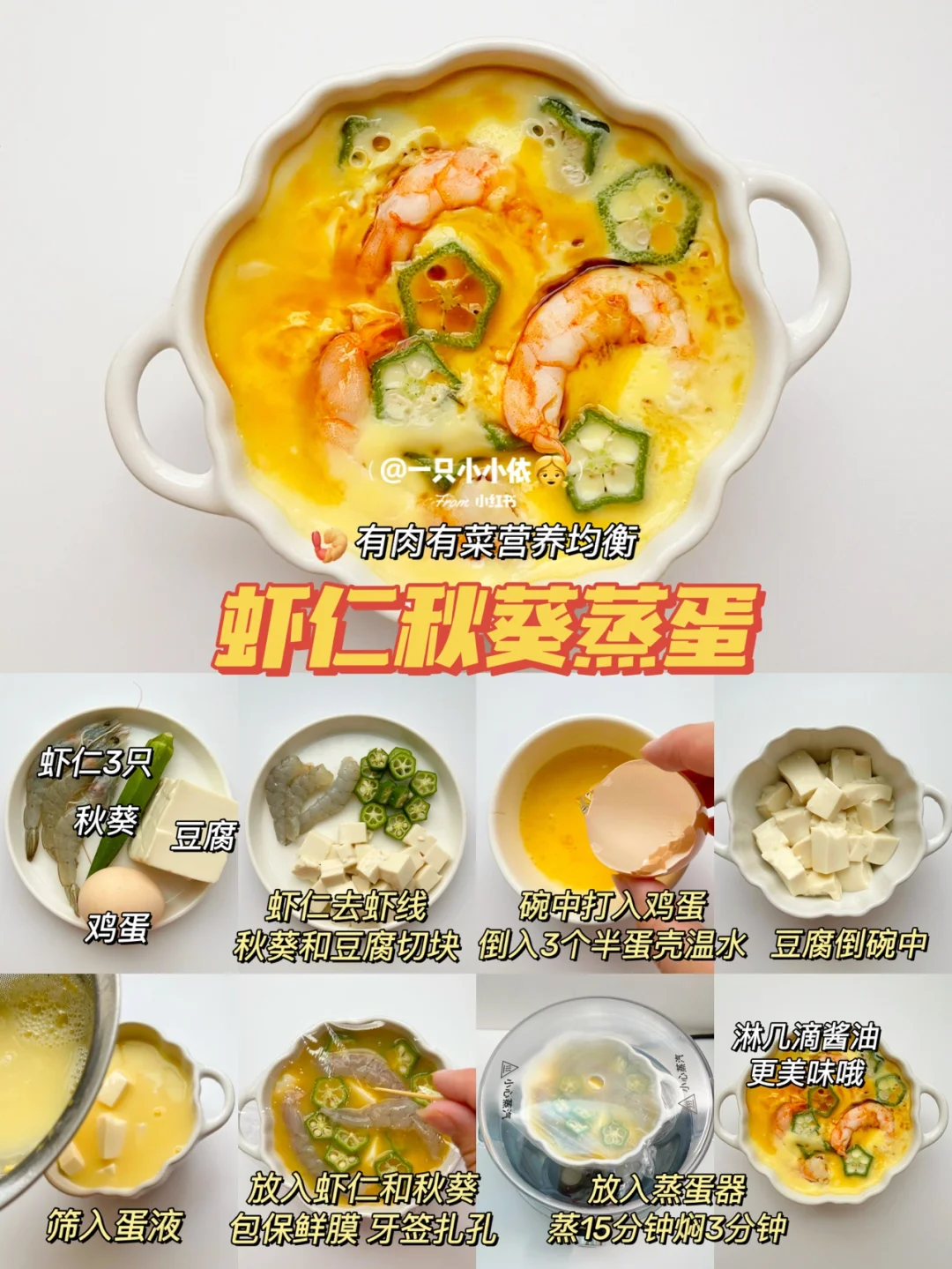 🔸食材:虾仁3只、秋葵、豆腐、鸡蛋1个