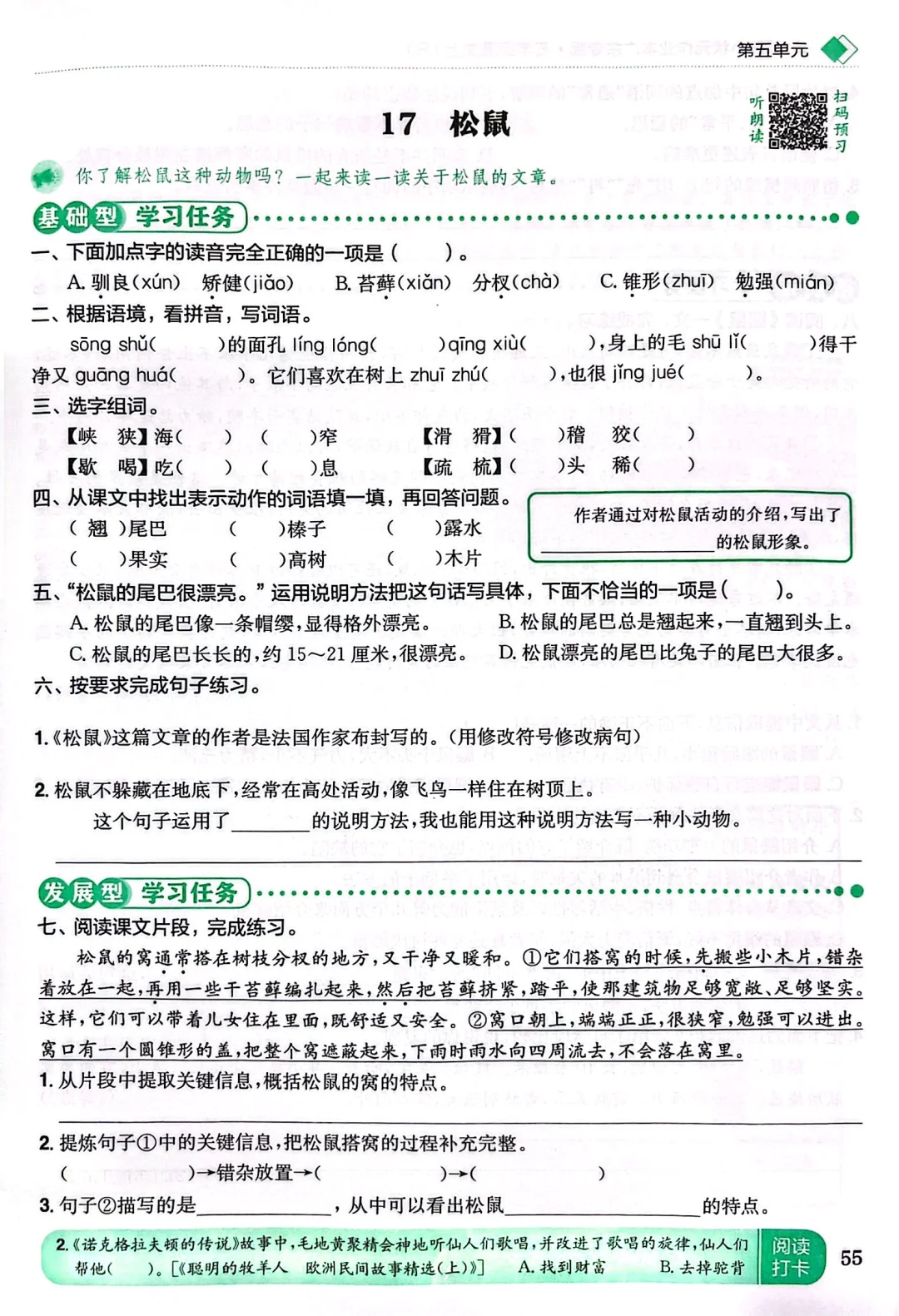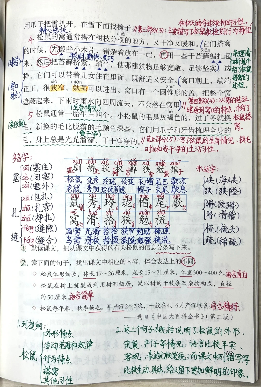 2. 了解松鼠的特点,提炼、梳理松鼠的相关信息,并分条记录。(重点)