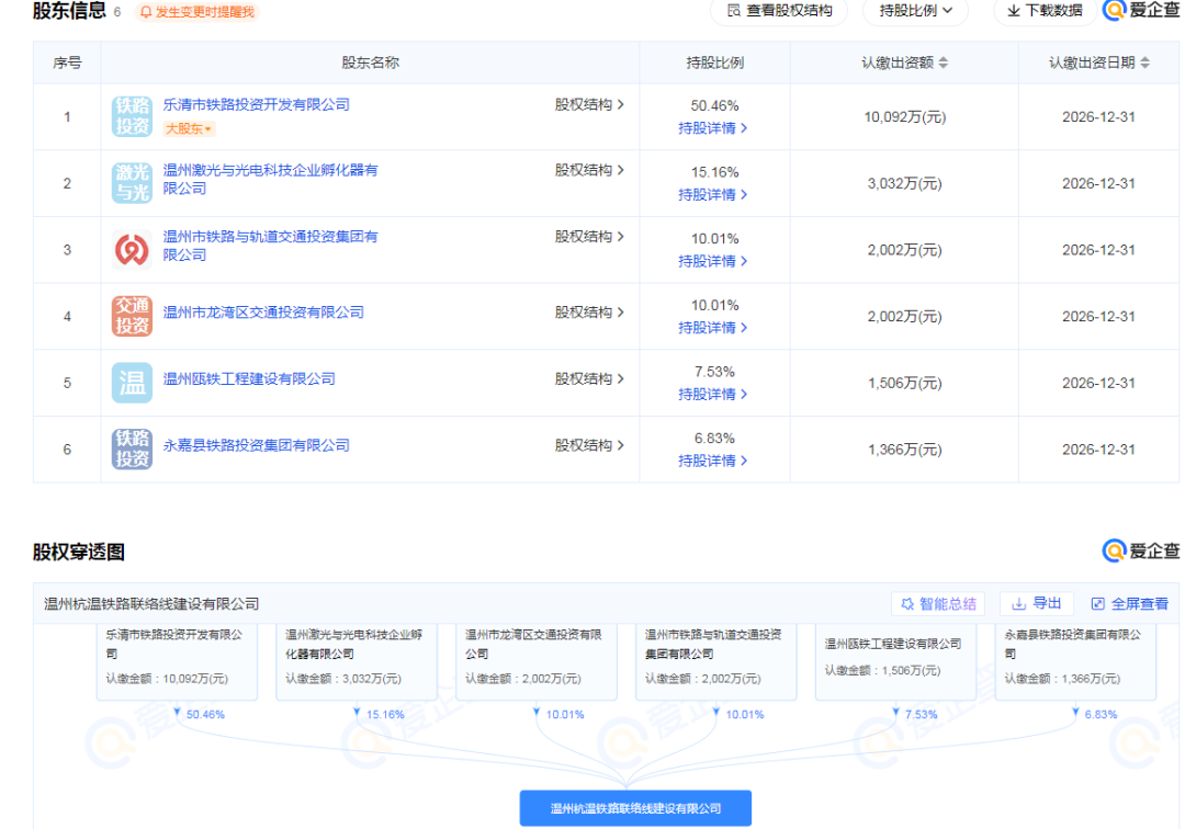 据股权穿透图显示,该公司由温州市铁路与轨道交通投资集团有限公司等共同持股。