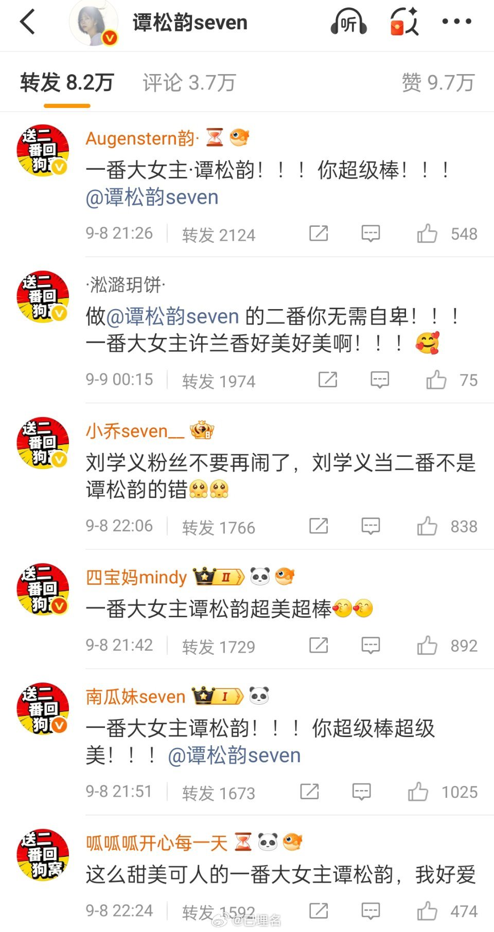 刘学义粉丝给谭松韵的转发区排字,热门被谭丝全洗了[允悲][允悲]!