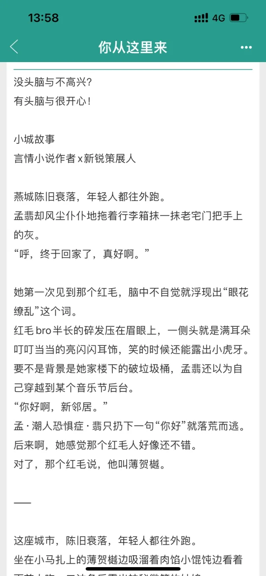 诡秘们!速速来看这个香香饭! 言情作者女主x策展人男主,第一次见面女主就被红毛潮人男主吓得跑路了,笑得我嘎嘎的!!! 男主表面狂拽酷帅,实则闷声搞事业的超绝事业脑,两个人互动超级好玩谁懂啊!! 男主的容貌,女主的荣耀~补药放过这对可爱小情侣啊啊啊啊