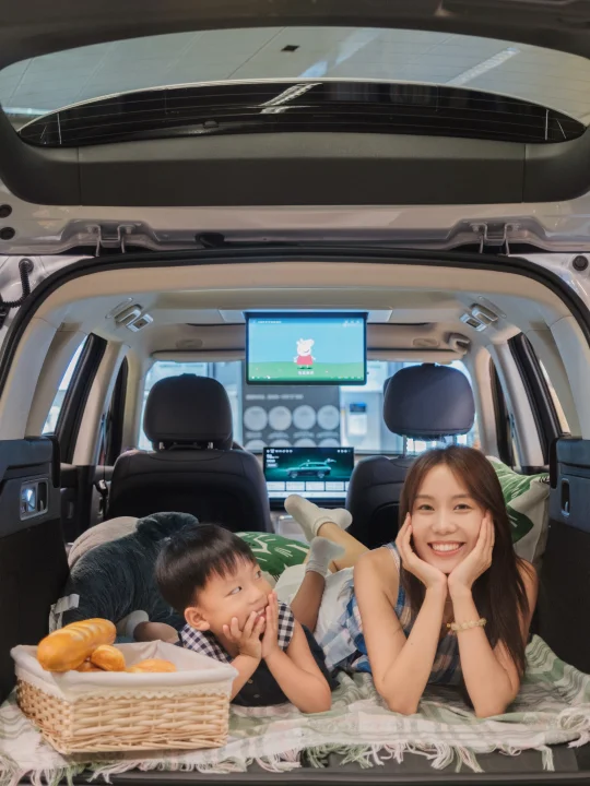 🌈后排空间很大!宽敞舒适,更吸引我的是一键成床🛏️模式,按一下,躺平模式立即开启🎉~带娃出去露营啥的想躺就躺,幸福指数爆表了!