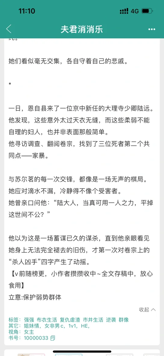 这本书的男女主关系也太刺激了吧! 她是柔软谨慎的富商遗孀,他是刚正不阿的大理寺卿。 他早已看透她的伪装,却不仅不揭穿,反而在群狼环伺下护她周全,只因心疼她身上的旧伤和那些恶梦般的殴打。 “你为什么不抓我?” “女子在世间已是不易,他们4有余辜。这本不该是你们的错。” 他刚正不阿,为了她,为了她们,他不得不破例。 这场始于阴谋、陷于同情,爱于尊重的猫和老鼠游戏,他要如何亲手审判?!作者太会写了!全文存稿,放心入!