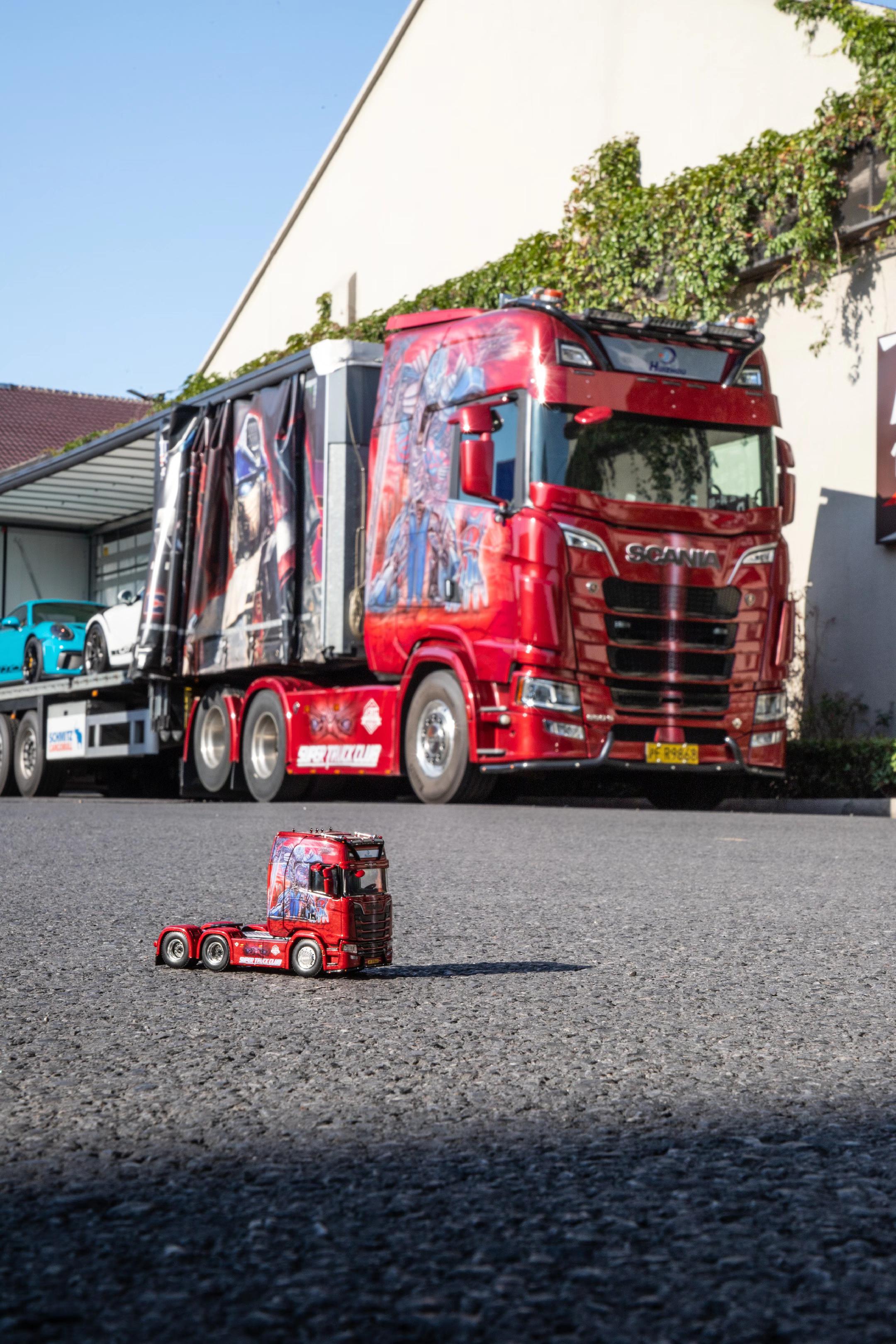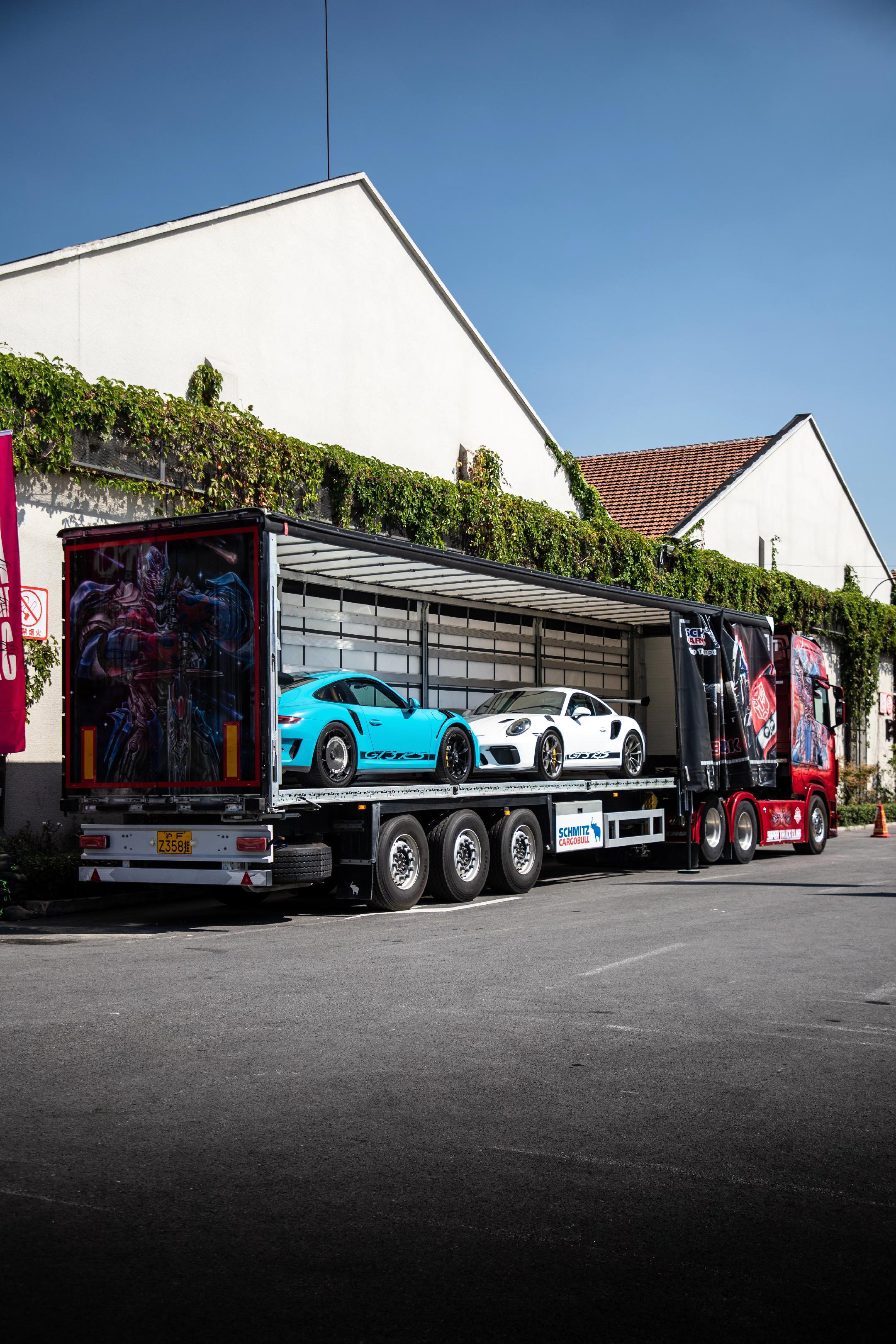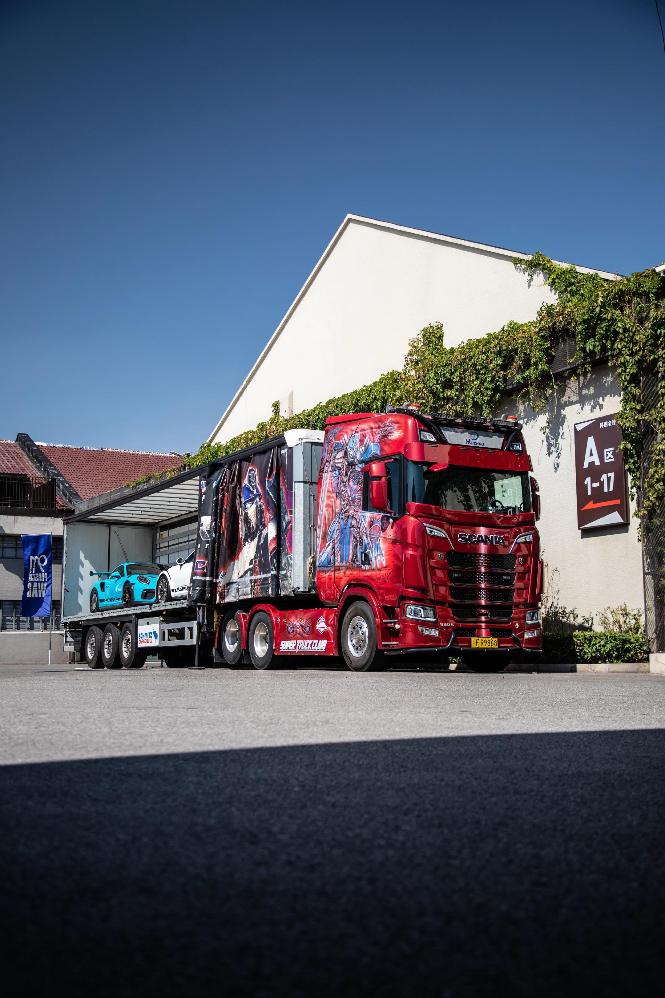 这就是梦寐以求的卡车生活。最好的卡车拉着最帅的车 斯堪尼亚650s V8 拉两台保时捷911 GT3 做梦都没想到会以这样形式出现 近期在weekend auto club 车库展出 到本月14号结束