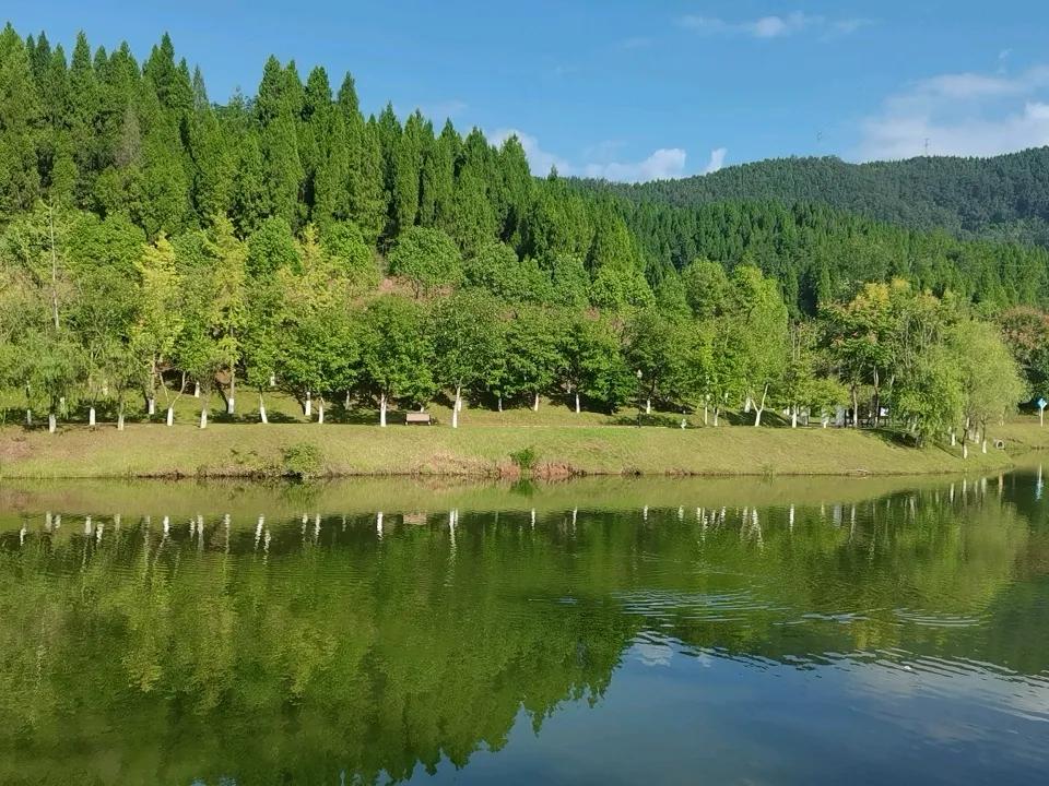 有山有水,湖光天色。有茂密的树林,满目苍翠。有平坦的健身步道,绿树成荫。真好!