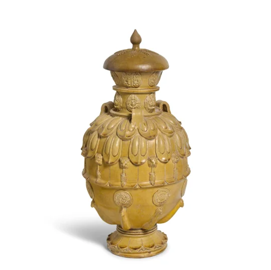北齊青釉堆貼帶蓋蓮花尊
