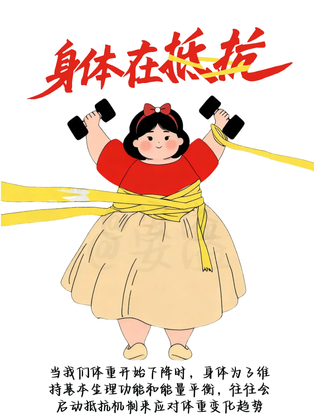 ✨其实可能是因为身体在抵抗,当我们体重开始下降时,身体为了维持基本生理功能和能量平衡,往往会启动一种抵抗机制来应对体重变化趋势,这种机制主要体现在两个方面,可以参考图3哦