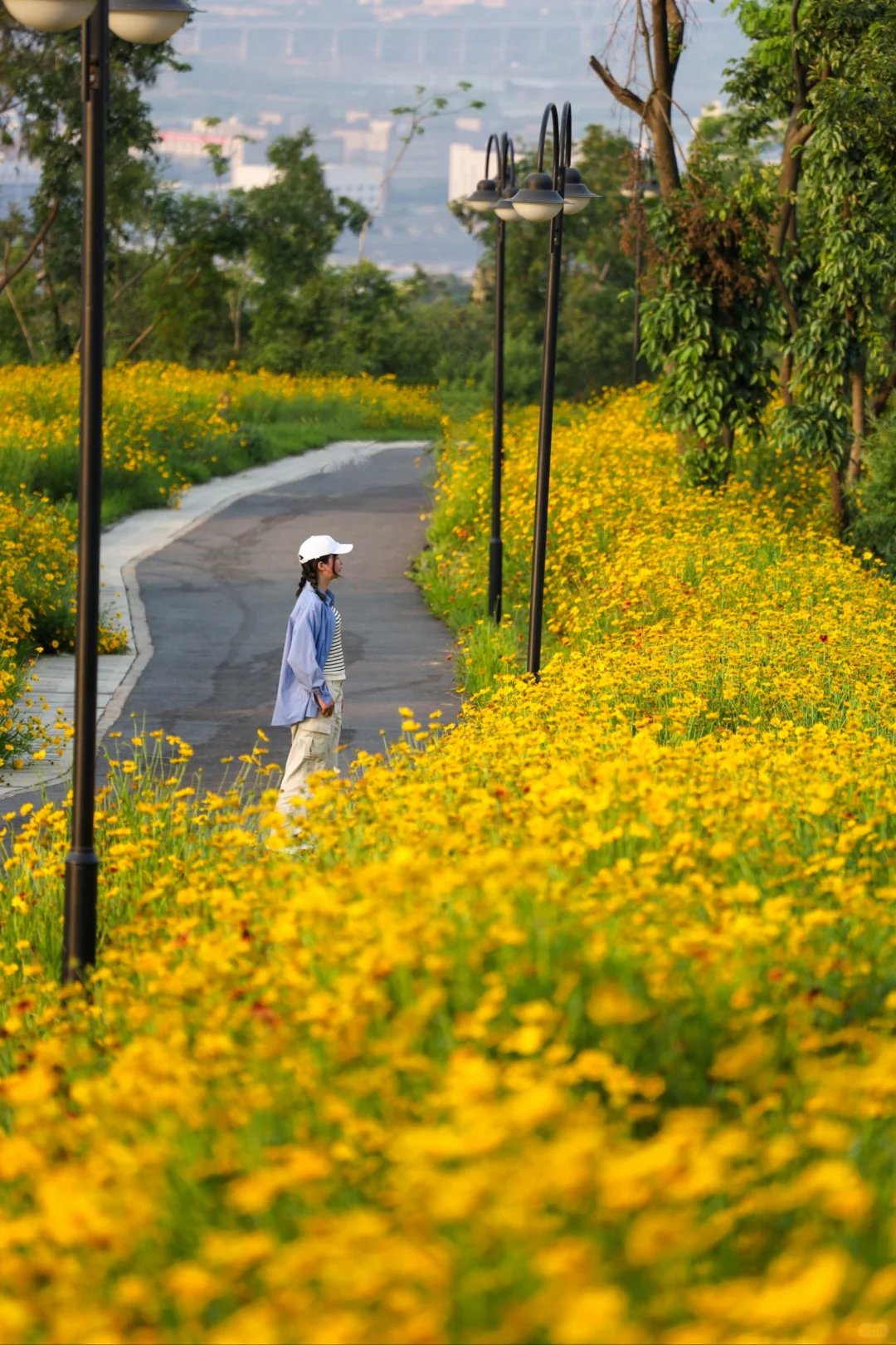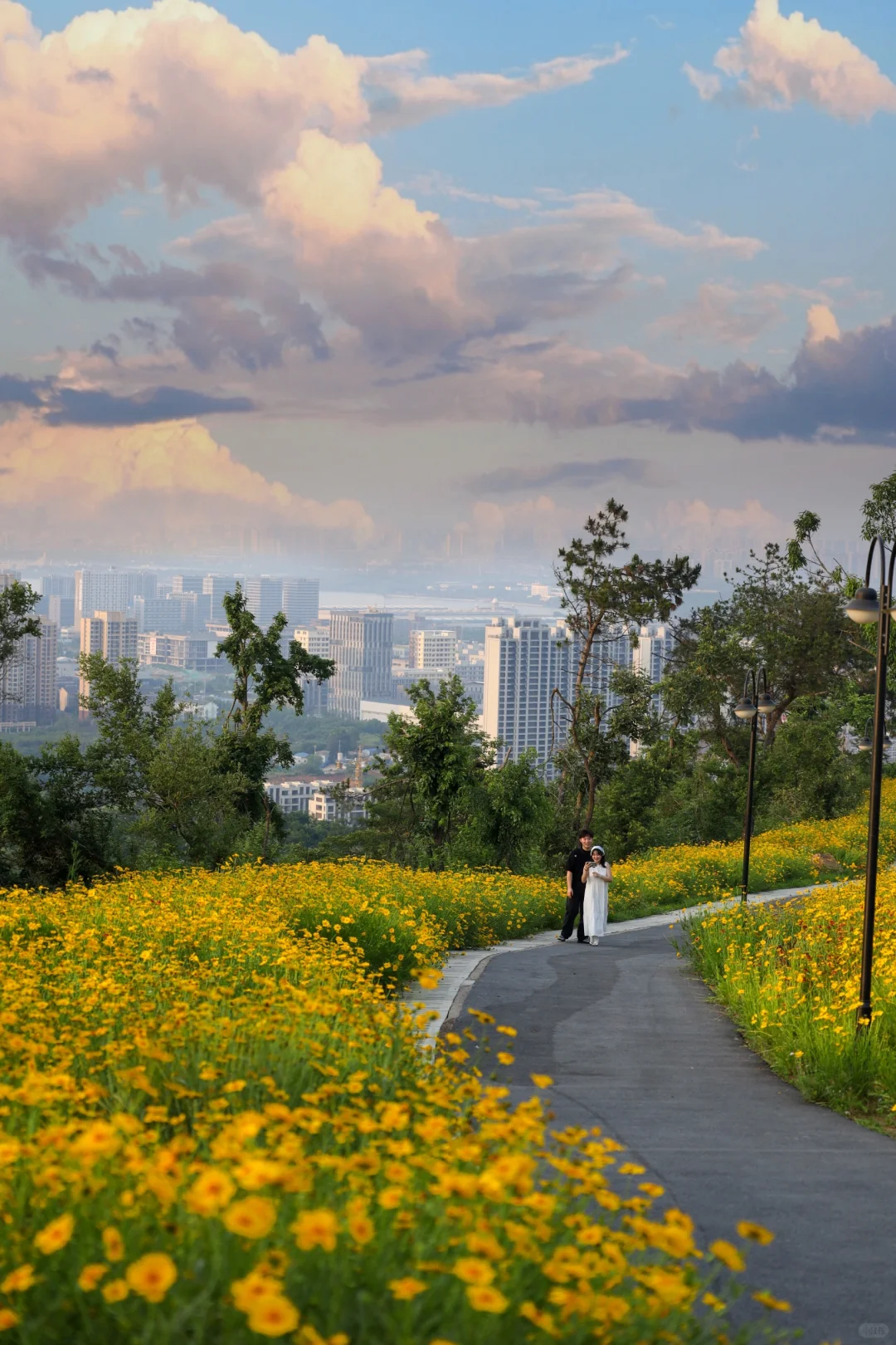 初夏的环山绿道真的太美了 沿台阶而上一路生花 山坡上开满了小黄花 徒步没啥难度适合溜娃 傍晚还能感受浪漫的落日晚风 山顶的视野很开阔能看到八分山 真的很治愈超适合拍照📷徒步 建议5点来不晒风景也很美 📍江夏大花山驿站 📝自驾到了之后可以一直开,途径水库右转开到不能开的地方停