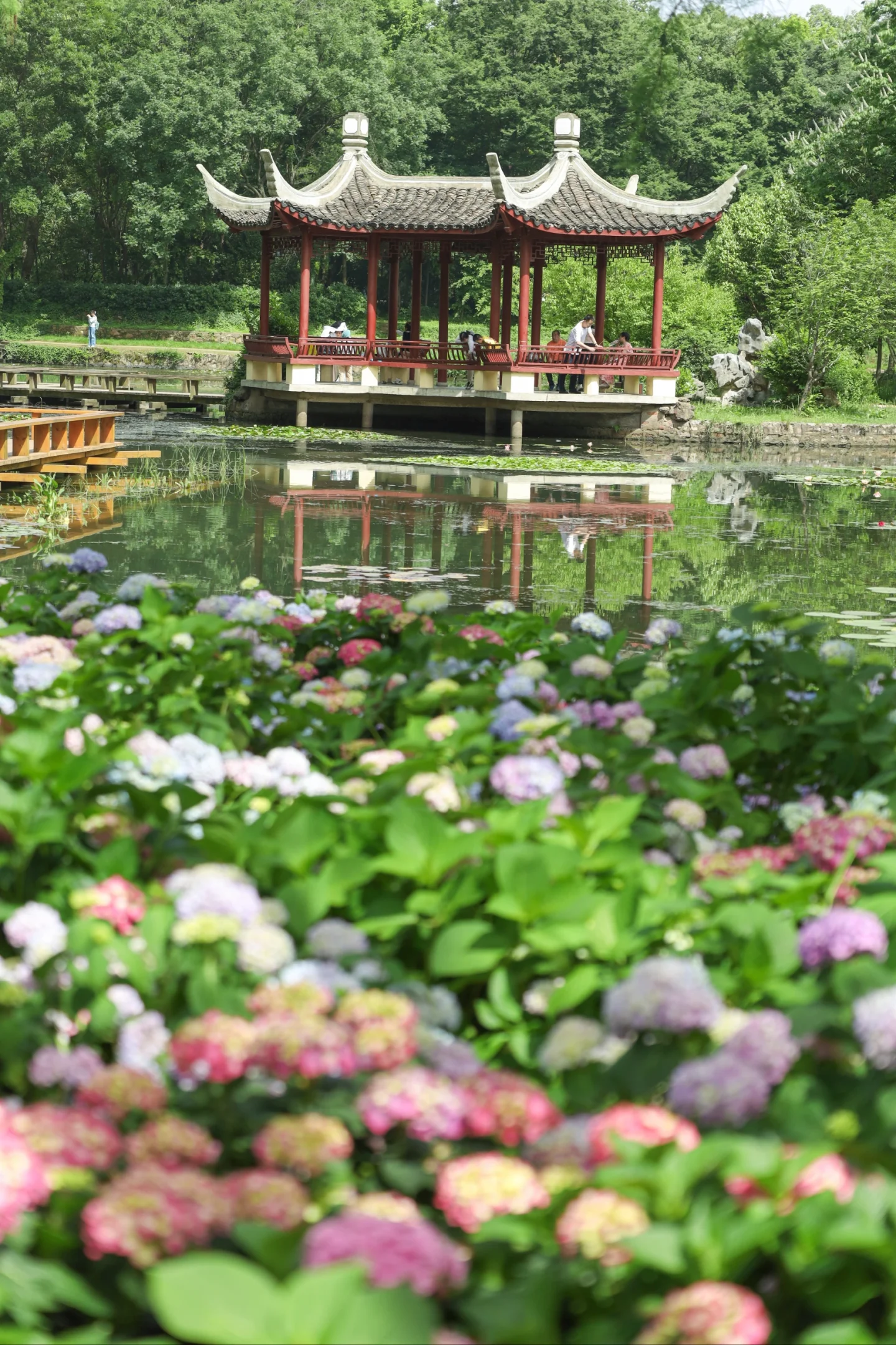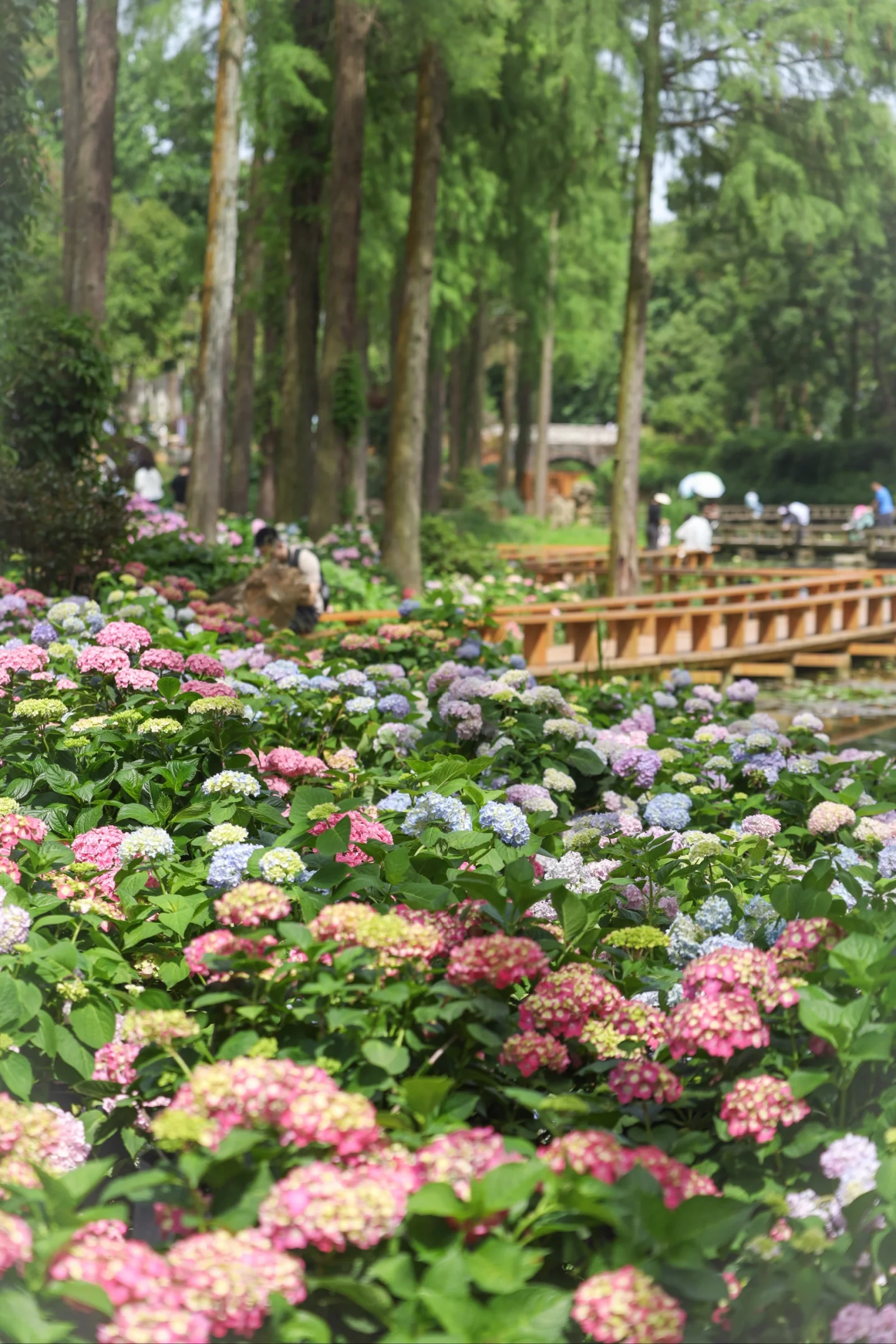 武汉这片无尽夏绣球花海也太美了 布景非常有莫奈花园油画感 超大一片有很多场景可以拍 小桥流水的绿色森林也超有氛围 睡莲也开了一些阳光下绝美 📍武汉植物园 💰35