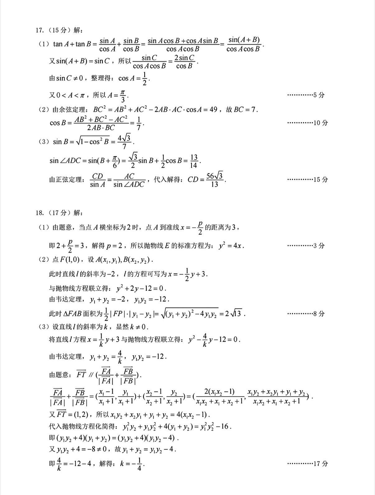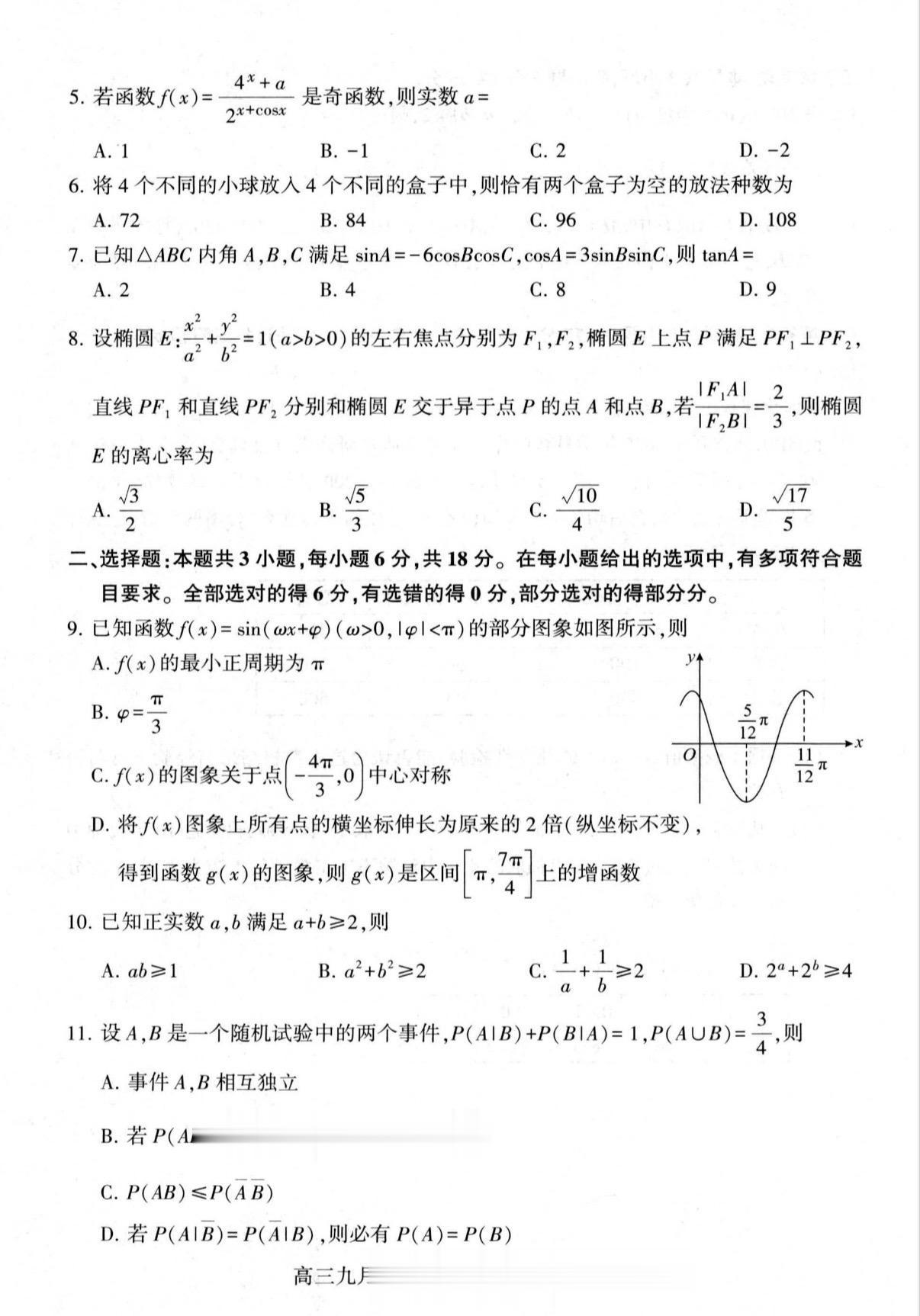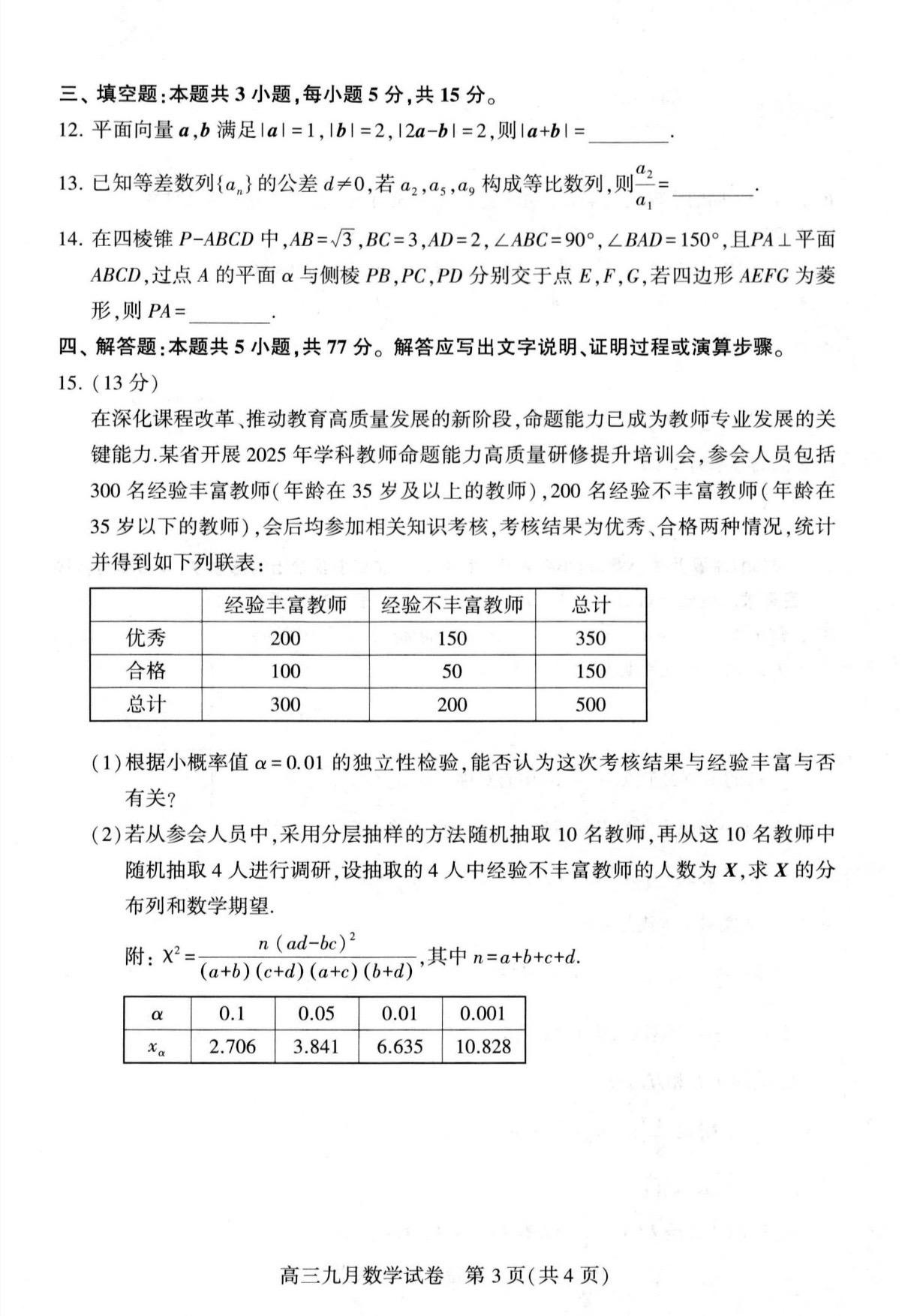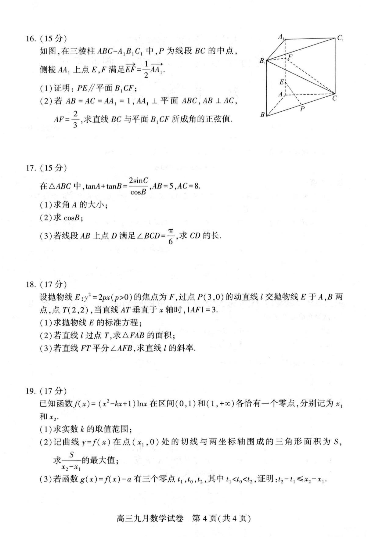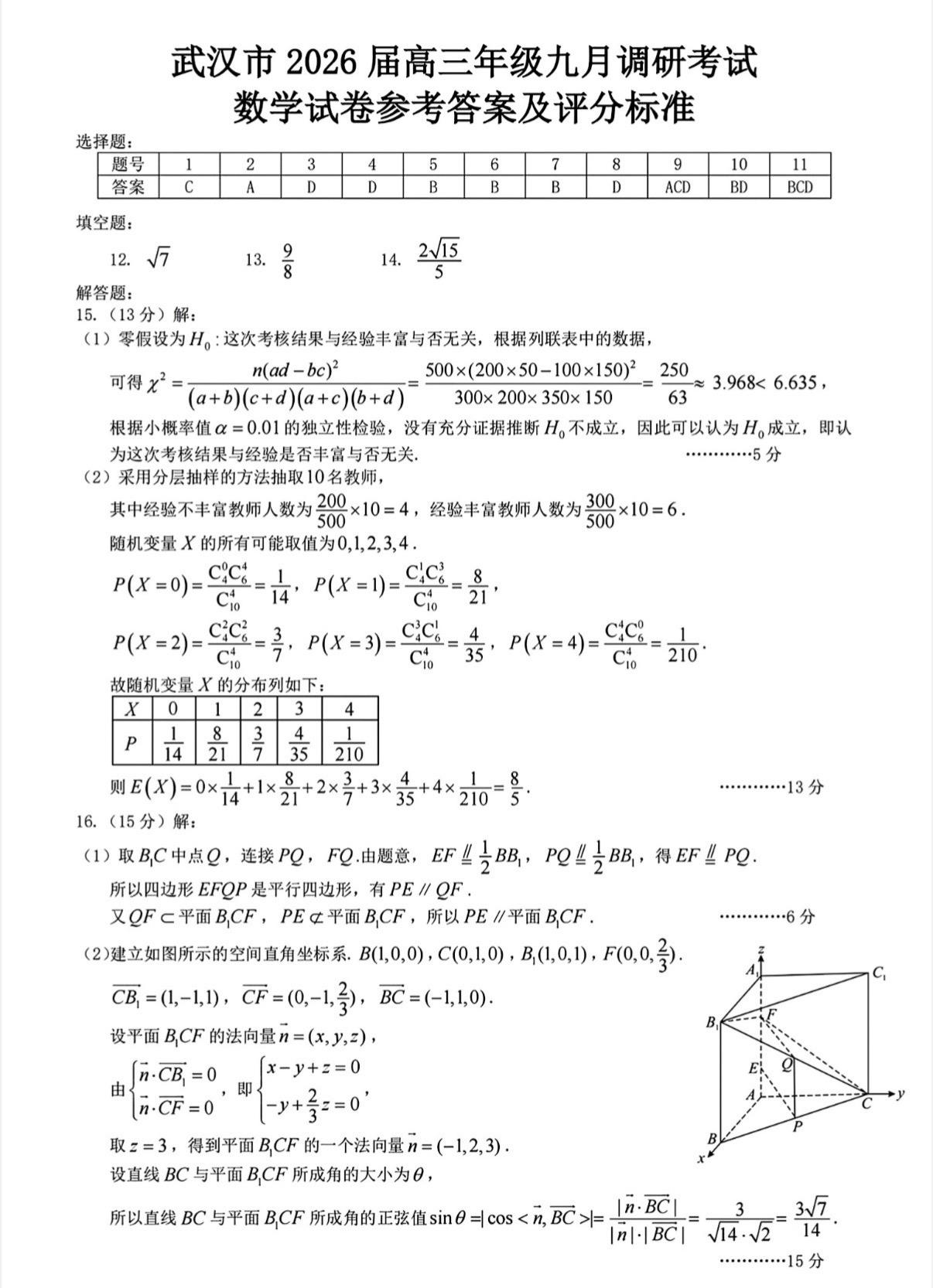 武汉市2026届高三九月调考数学试题及答案,试题结构回到传统模式,难度较大!