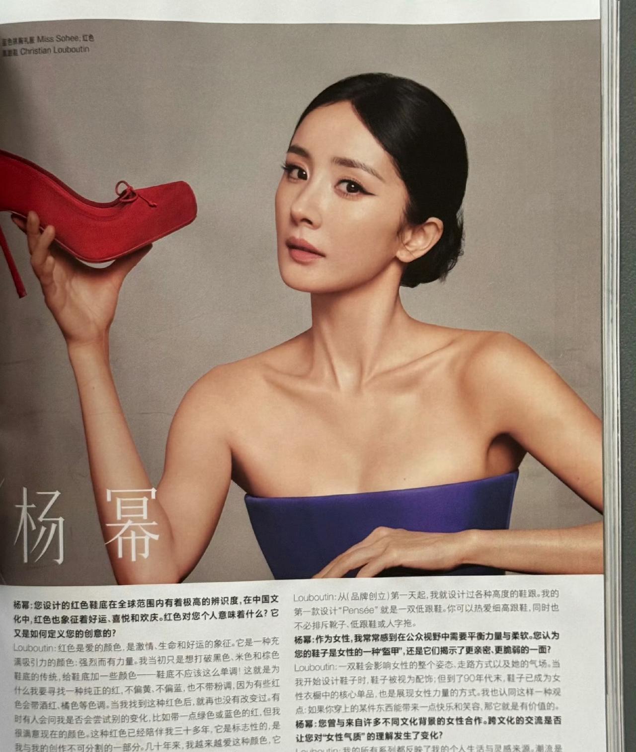 VOGUE九月刊内页有一张杨幂的新图未释出,还有杨幂和Christian Louboutin创始人Louboutin先生的对话!好美好高级[心][心]