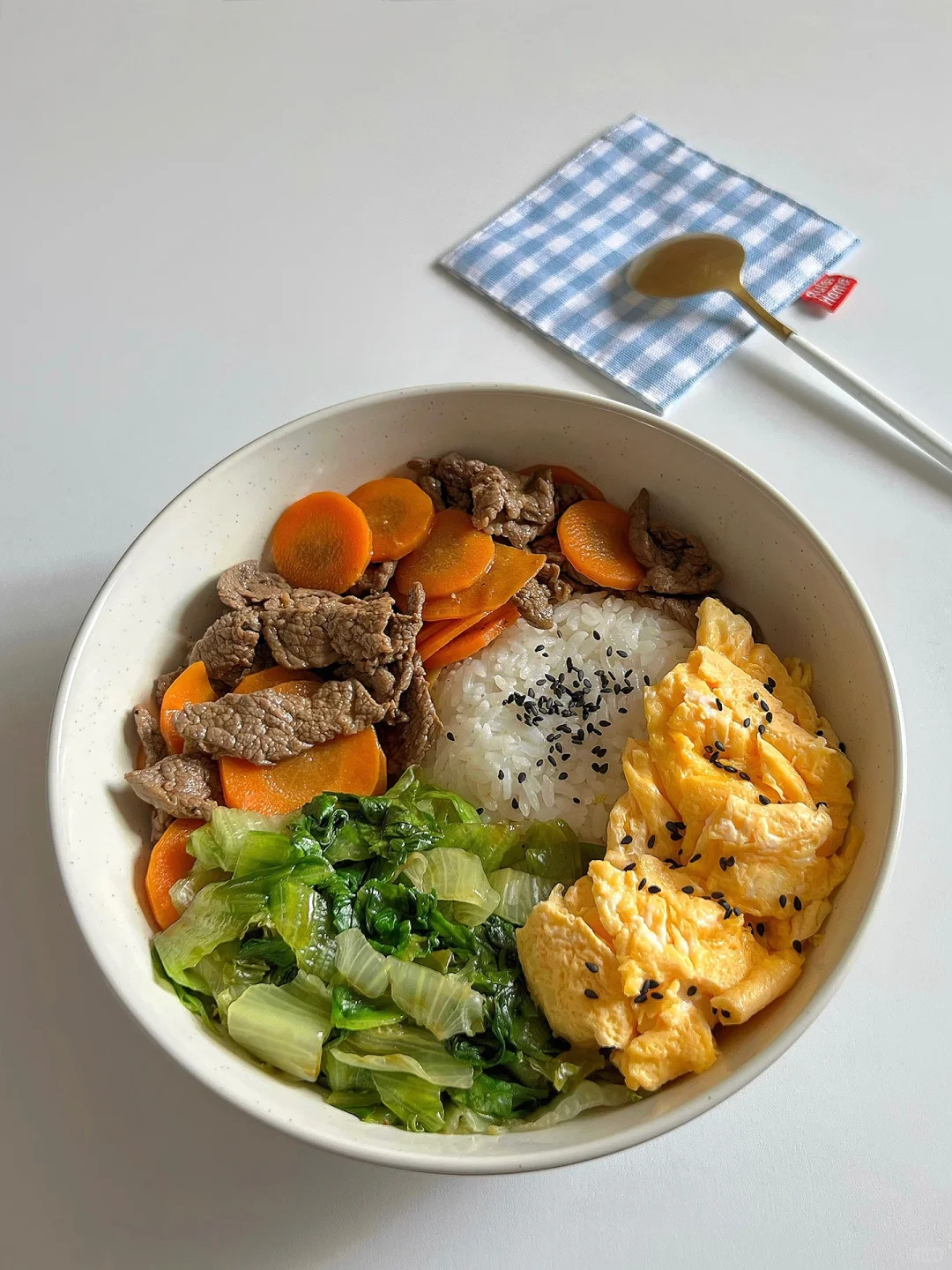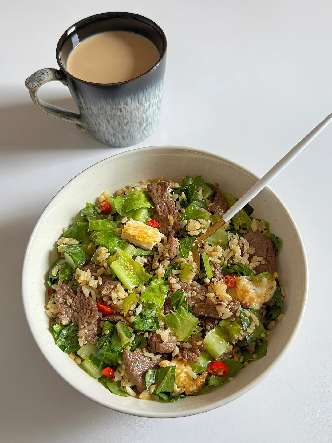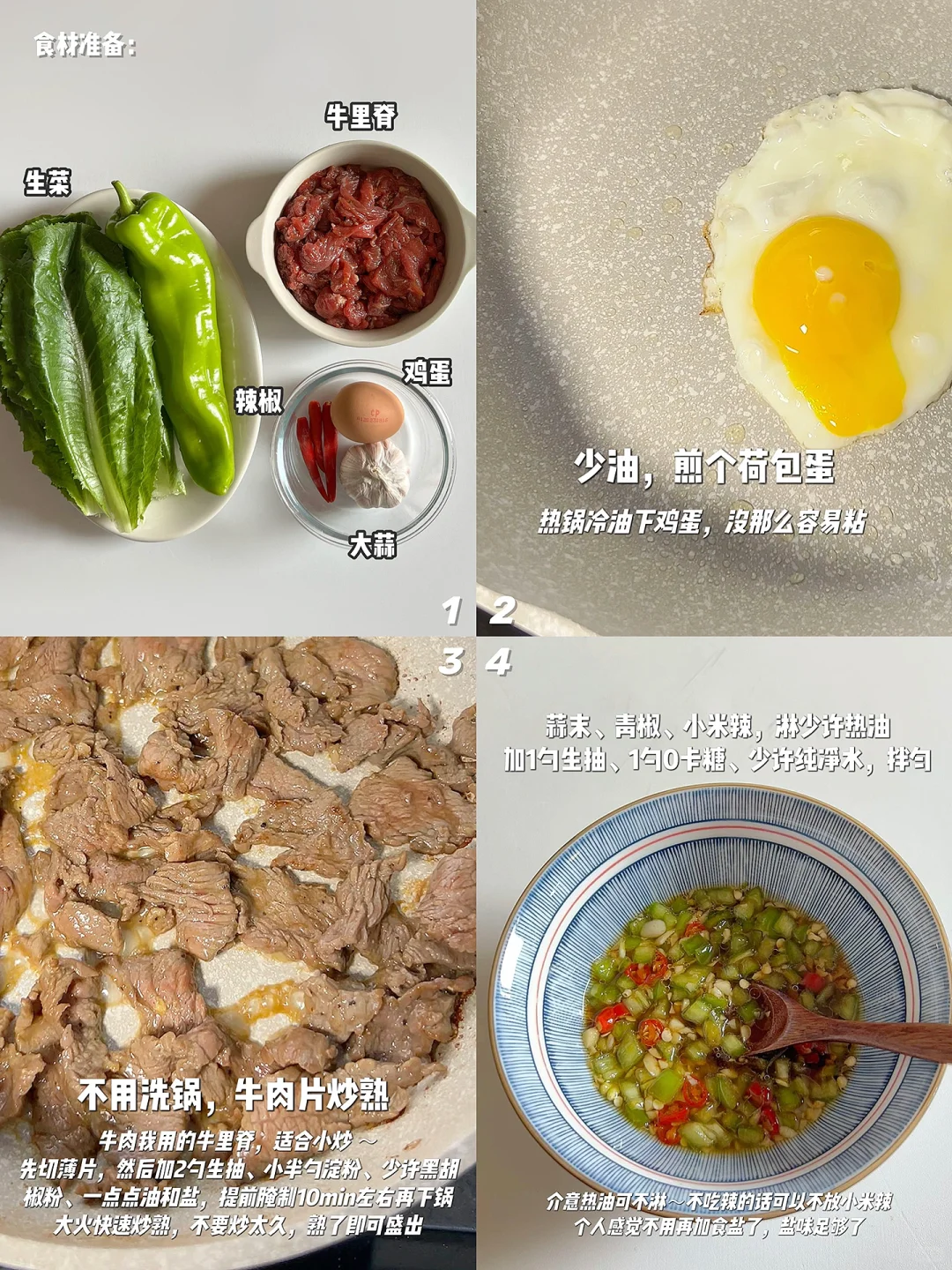 周4⃣️ 生菜➕牛肉➕煎蛋拌饭🍳