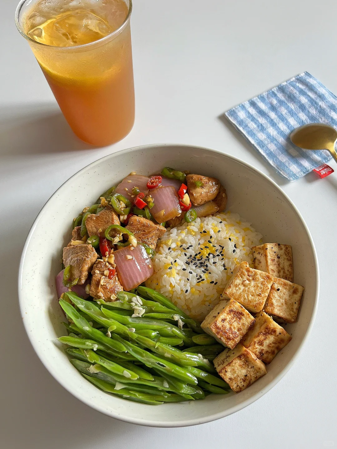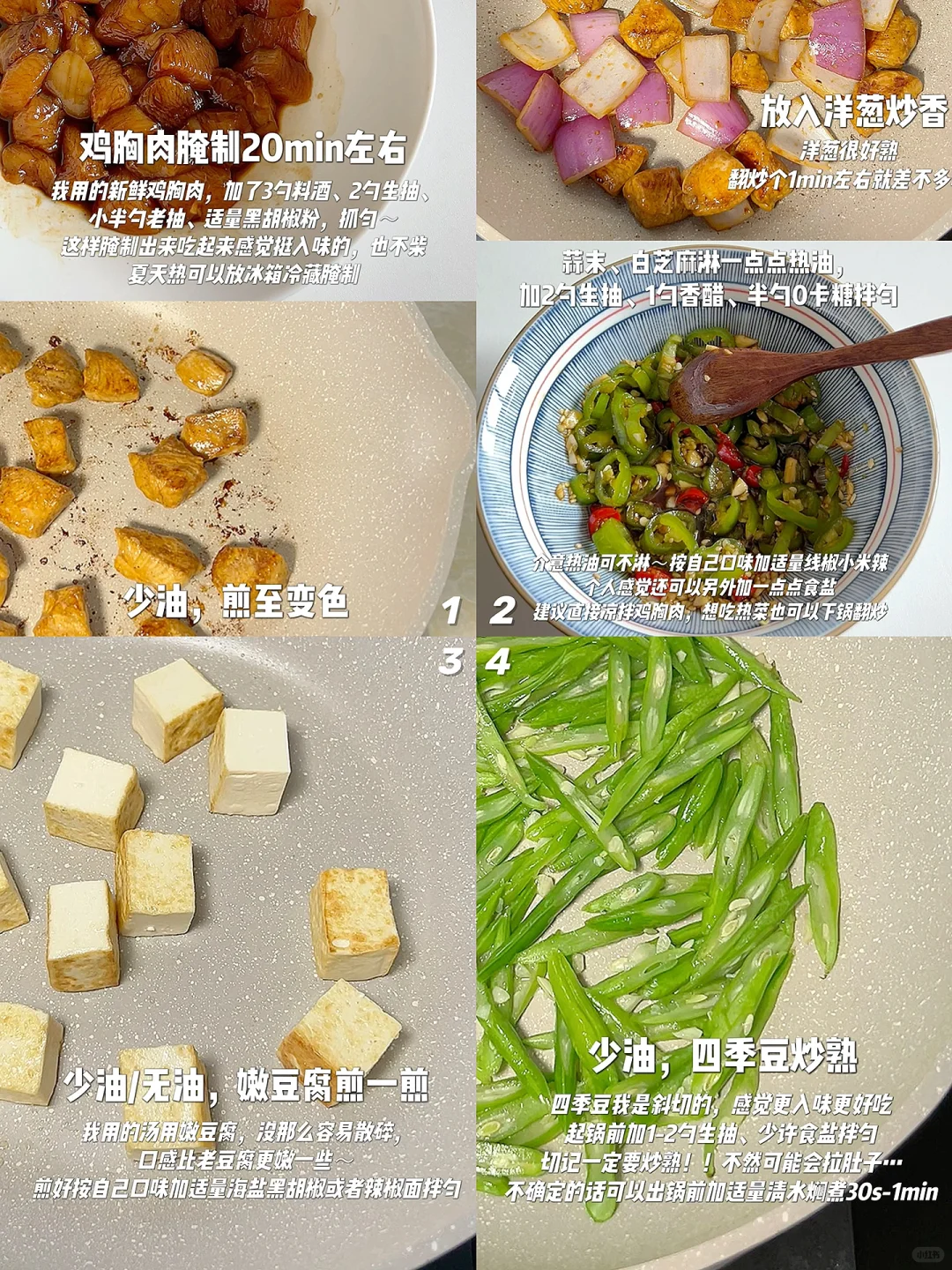 周5⃣️ 洋葱拌鸡胸肉➕清炒四季豆➕煎嫩豆腐🥗
