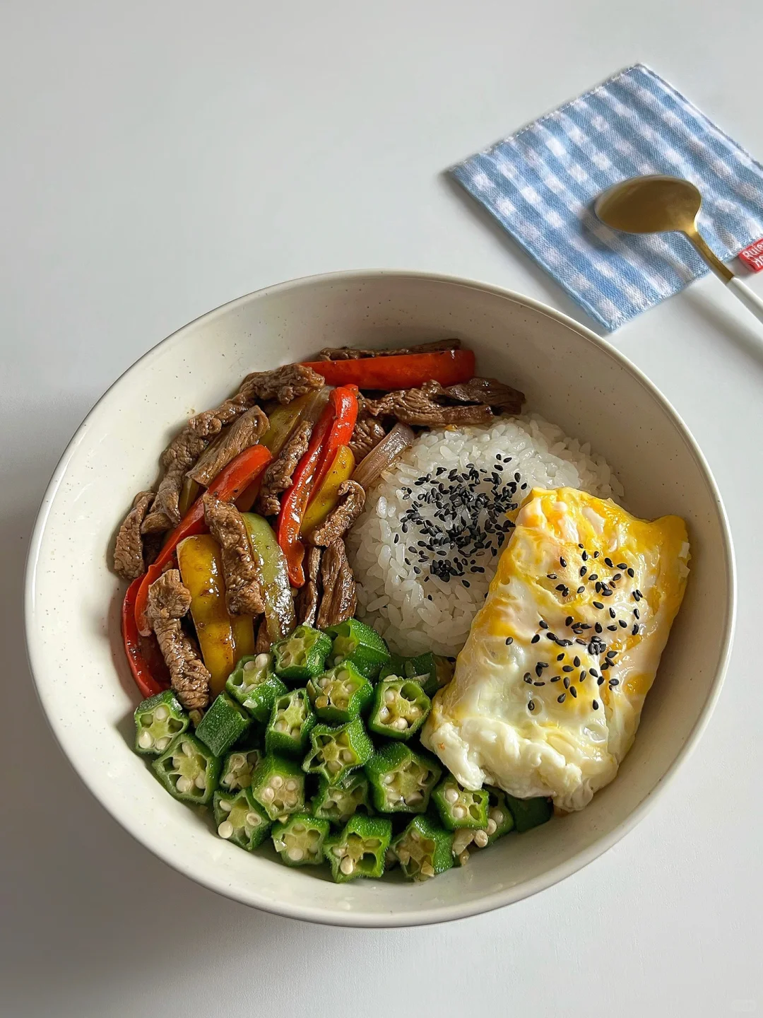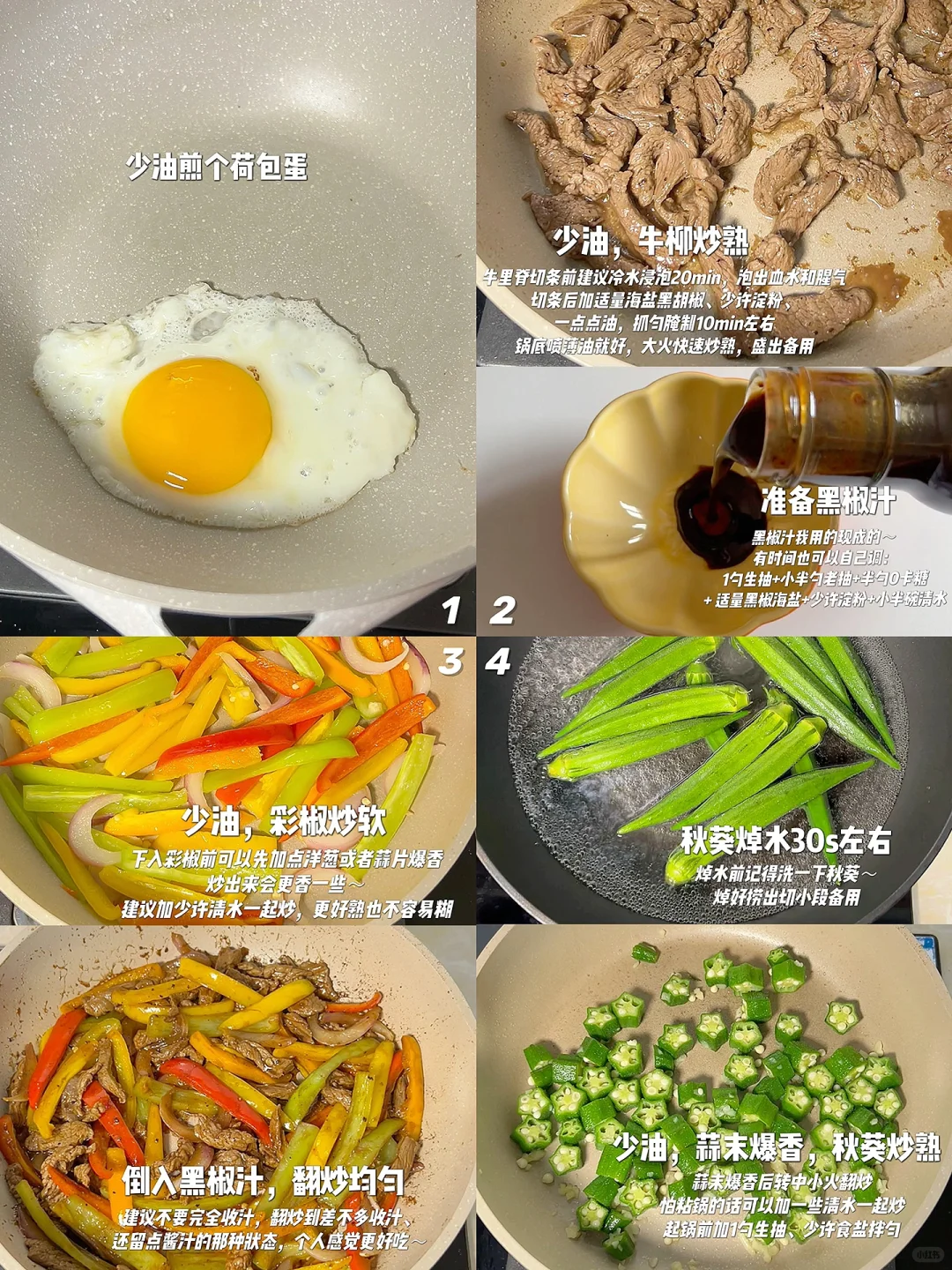 周6⃣️ 彩椒牛柳➕蒜蓉秋葵➕煎蛋🥩