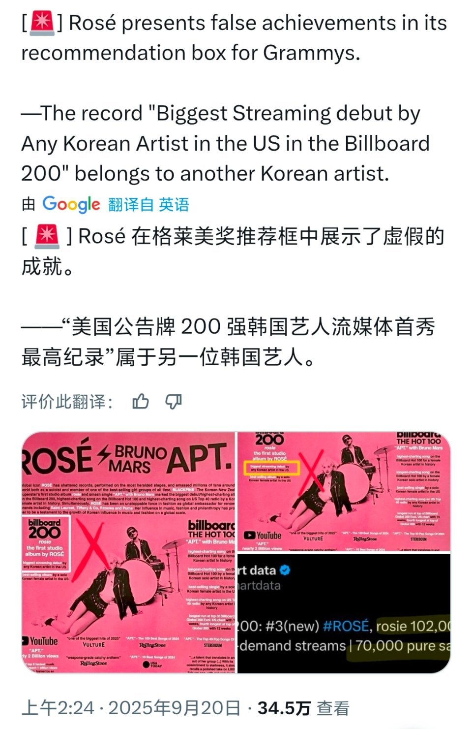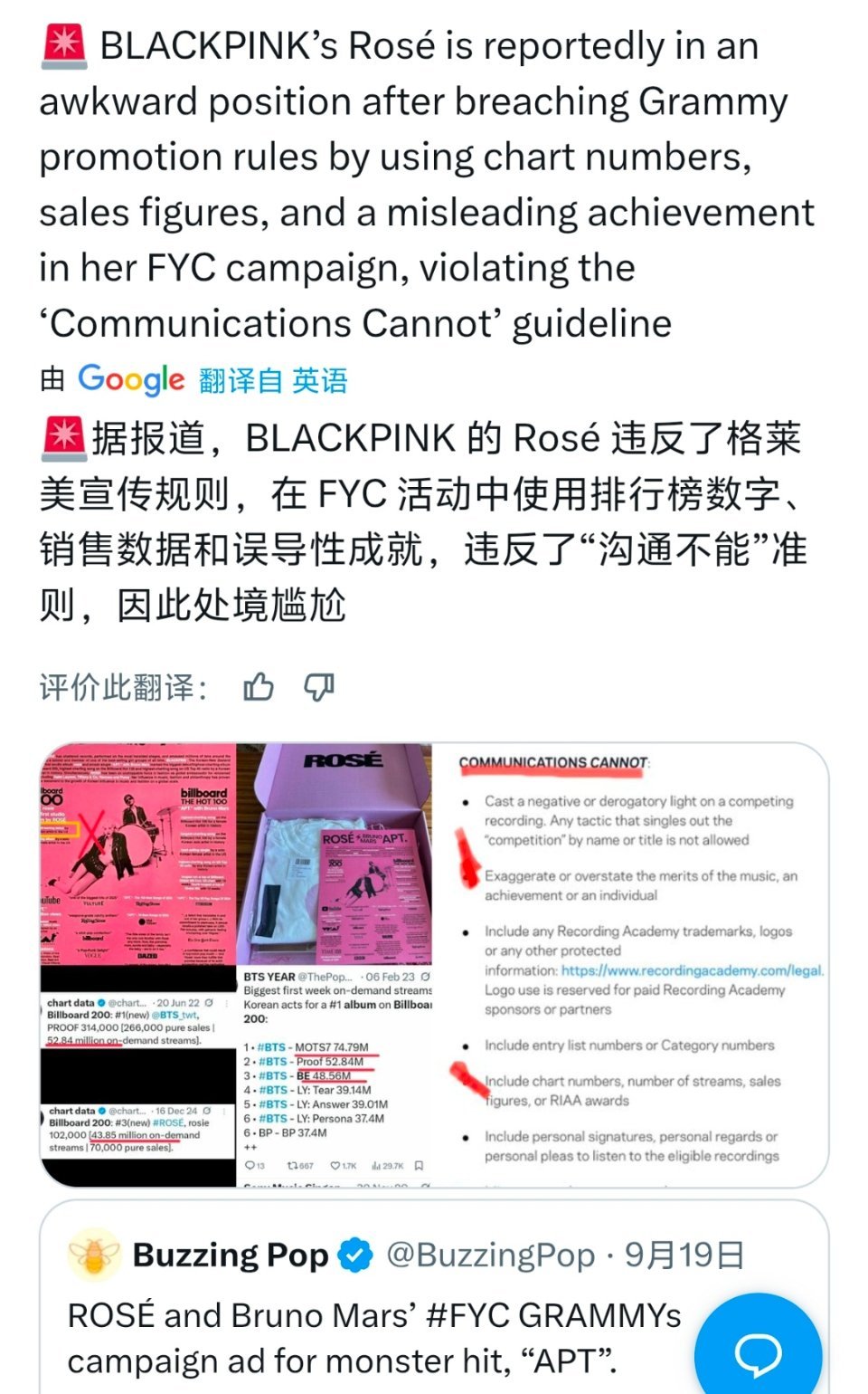 朴彩英格莱美公关海报被BTS粉丝扒违反规则?