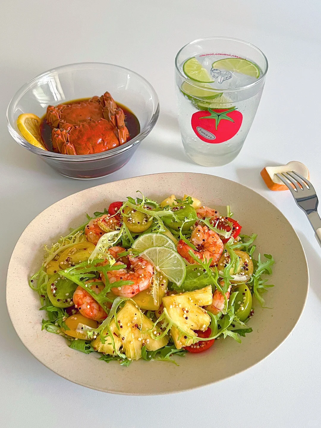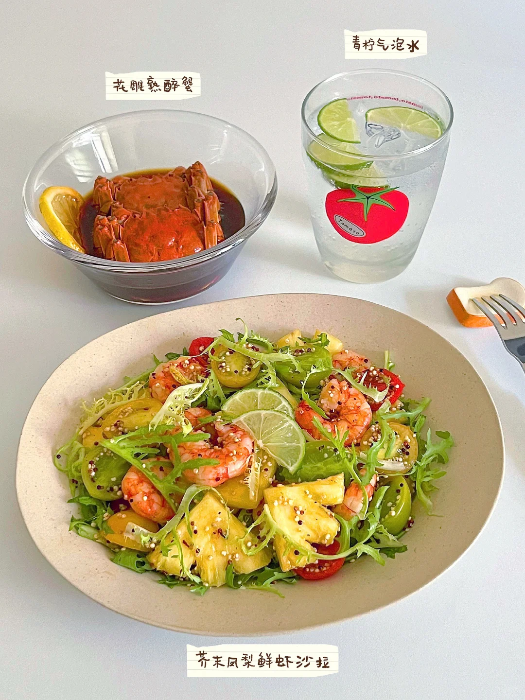 夏日低脂灵感|芥末凤梨鲜虾沙拉🍍熟醉蟹🦀