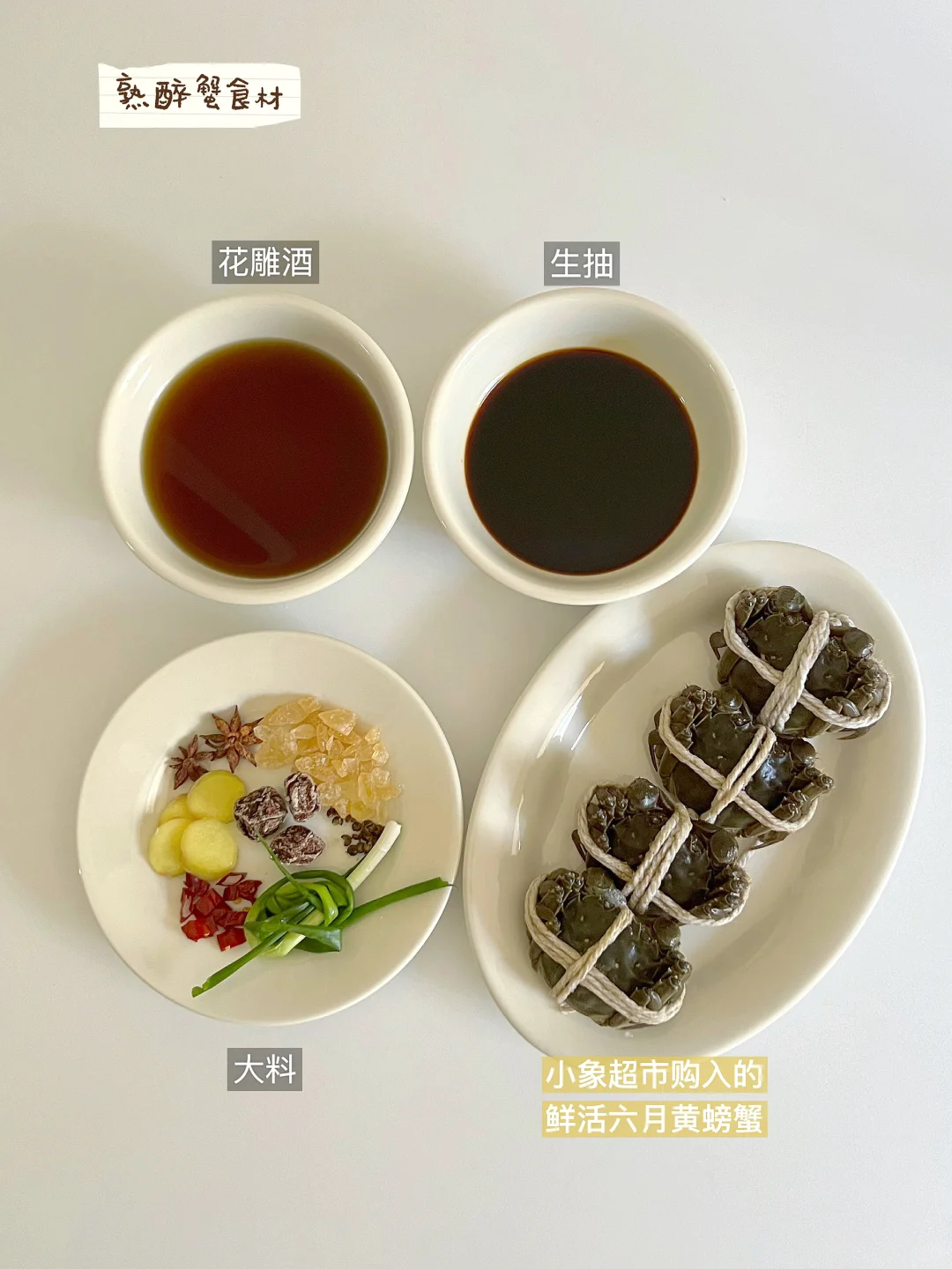 1⃣ 小象超市鲜活“六月黄”大闸蟹、花雕酒、冰糖、话梅、柠檬、大料