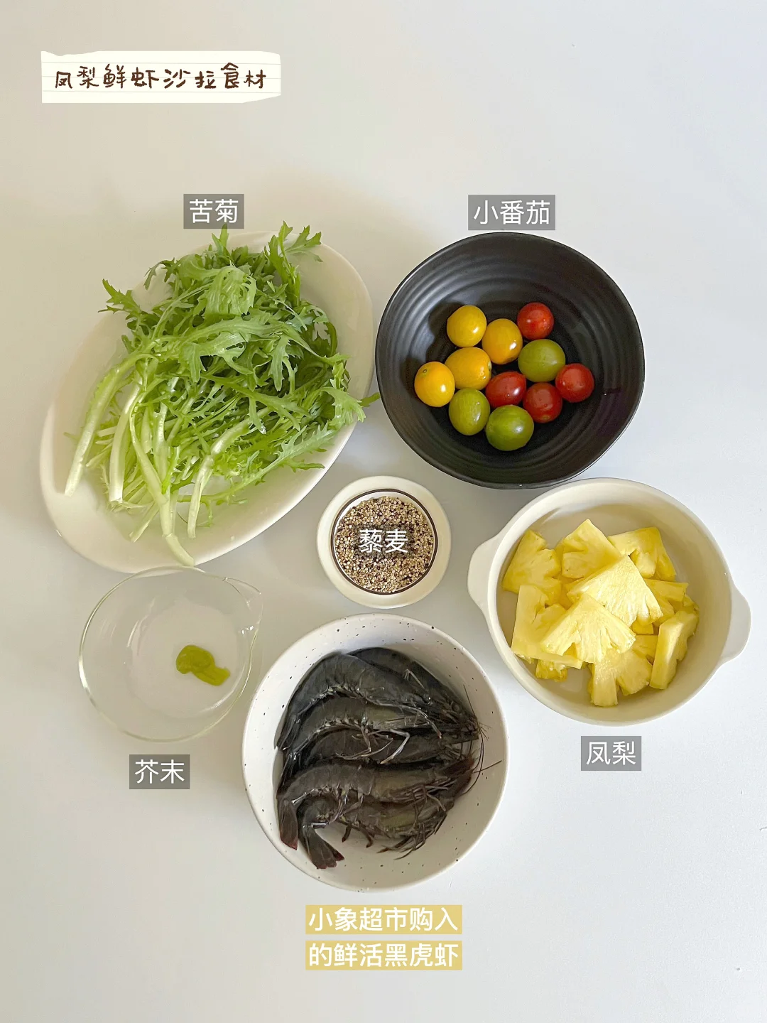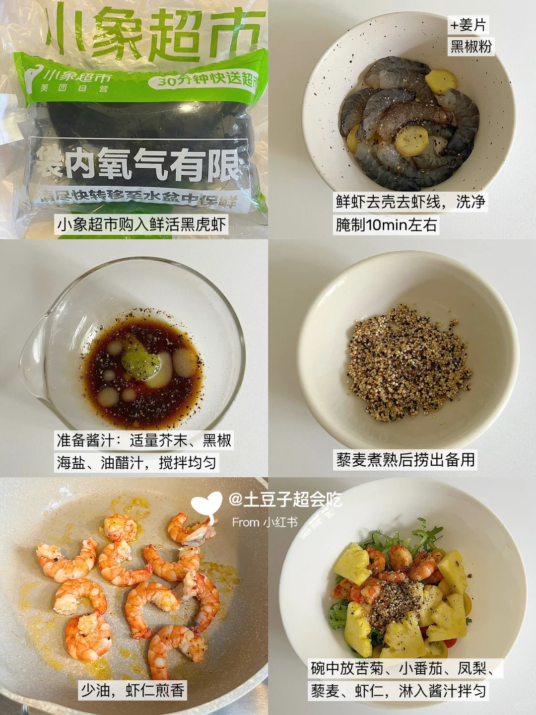 2⃣ 小象超市鲜活黑虎虾、凤梨、苦菊、藜麦、小番茄、芥末