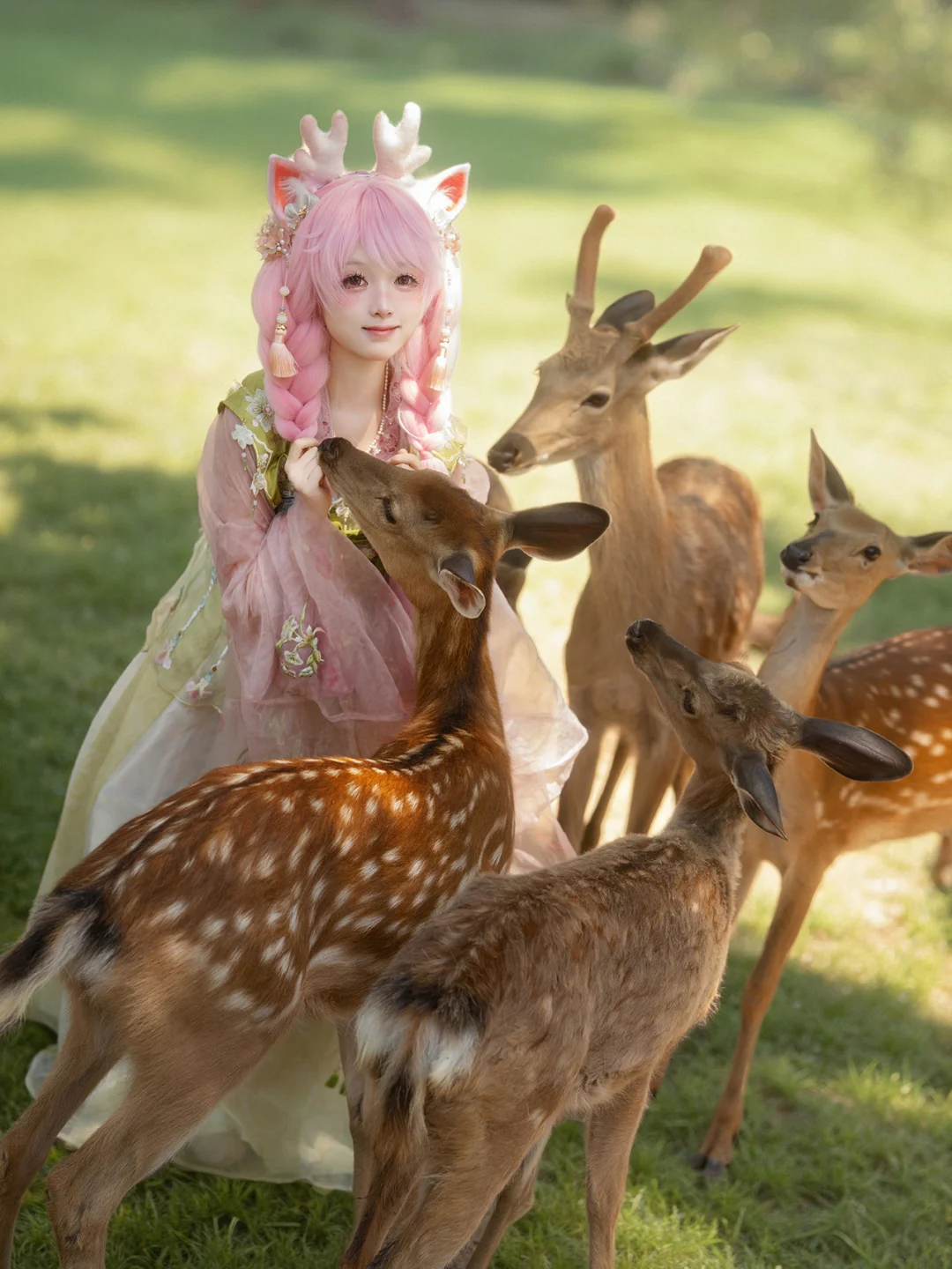 cos小鹿遇见了小鹿!! 瑶瑶也太可爱了吧~