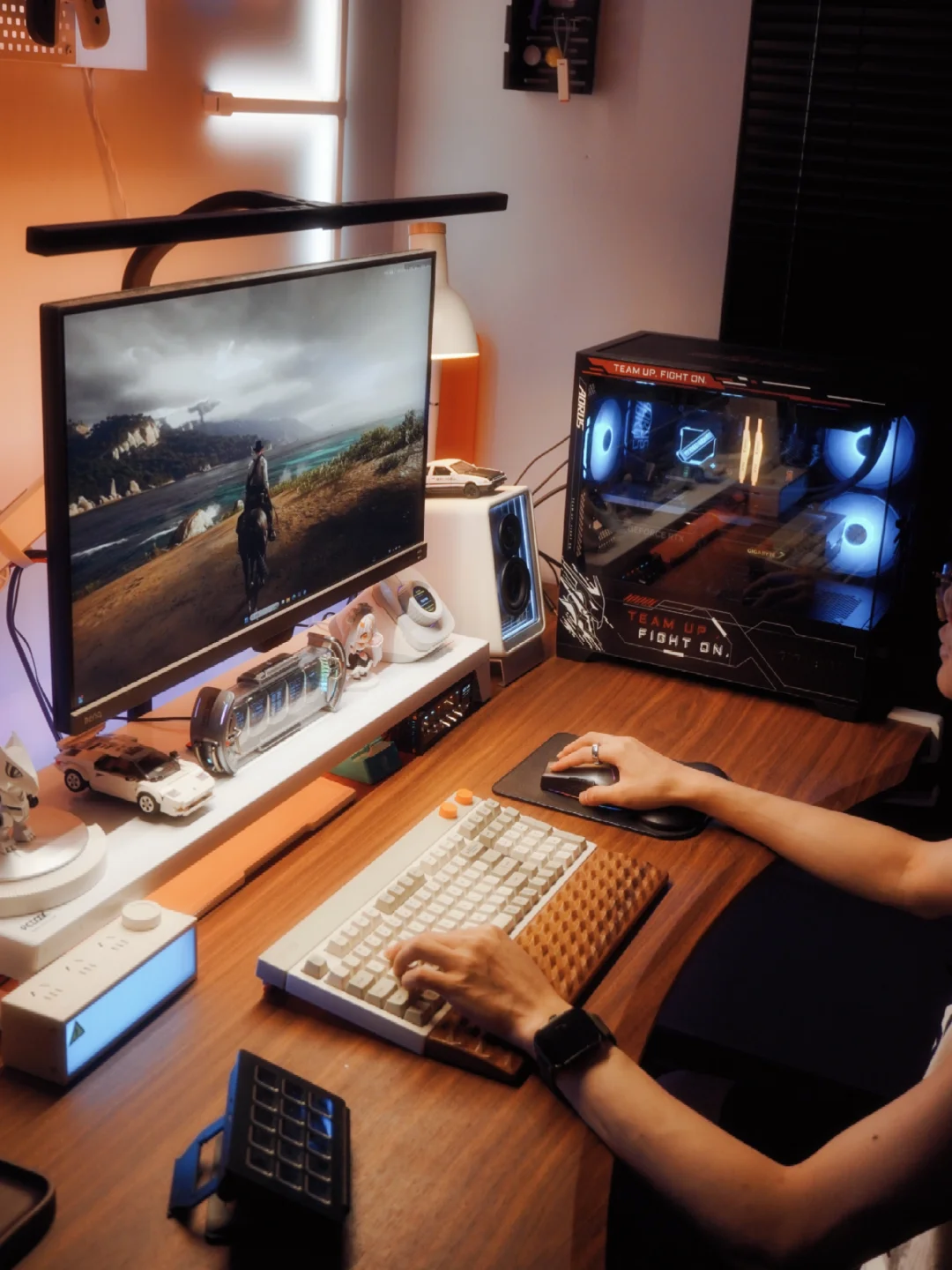 💡当灯光沿着桌沿漫出暖黄的边,桌面的秩序感,是连鼠标移动轨迹都透着舒服的那种。氛围的外观让我使用前看着就舒心。