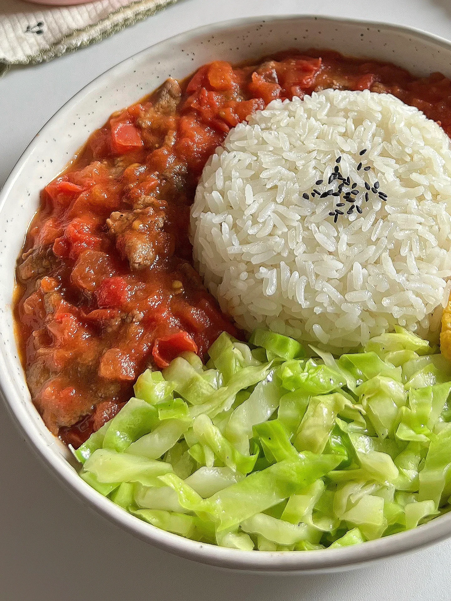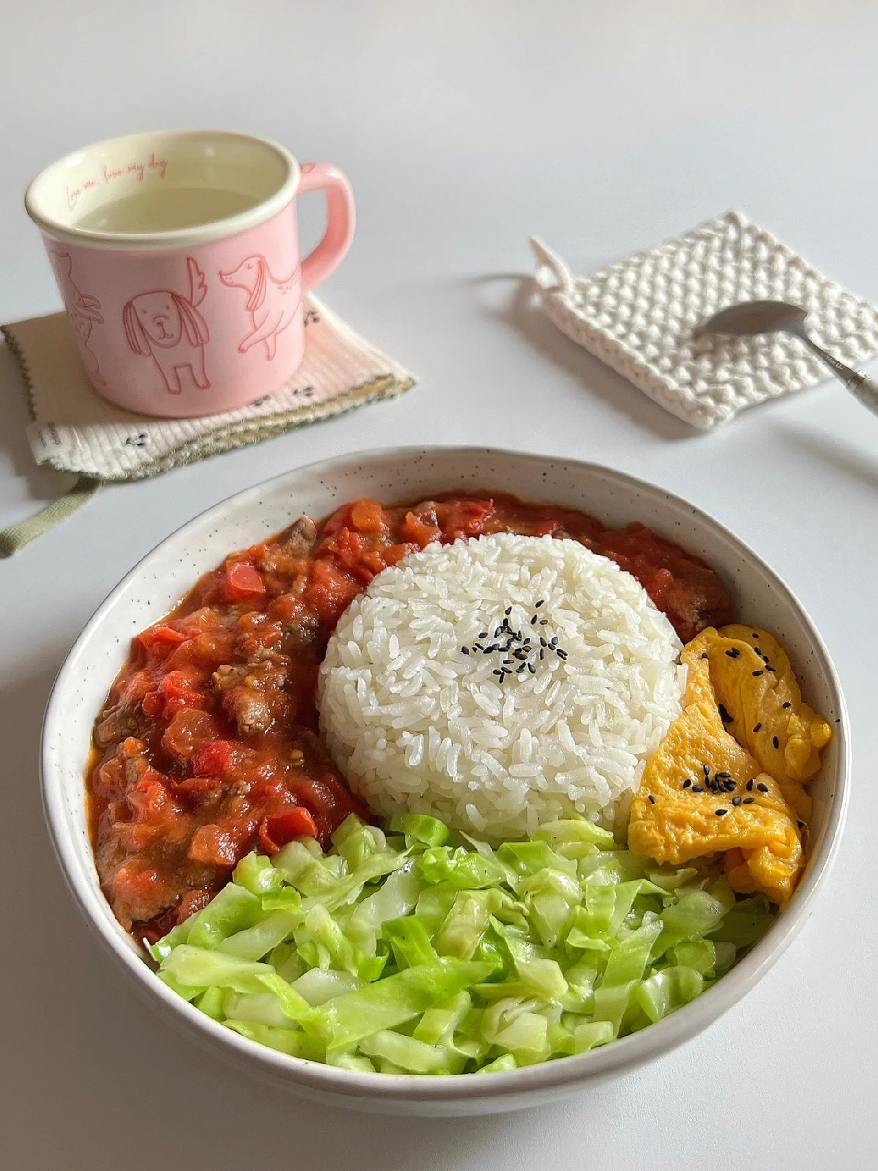 今天吃的是西红柿牛肉➕清炒卷心菜➕滑蛋