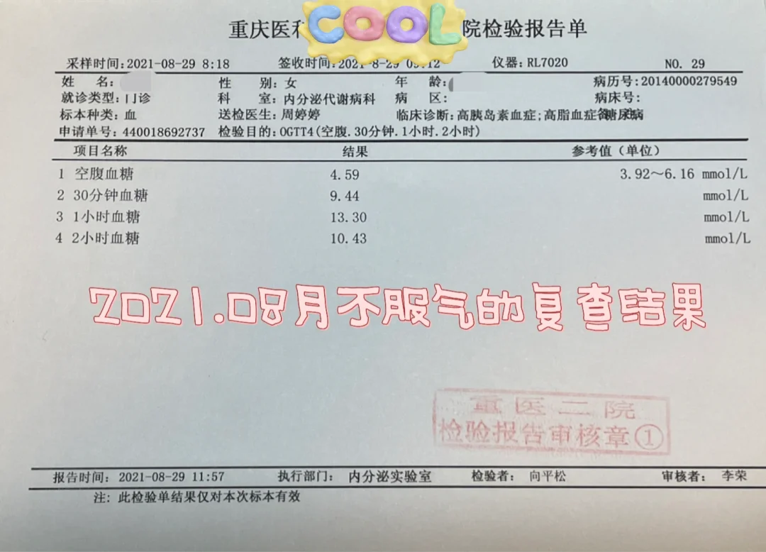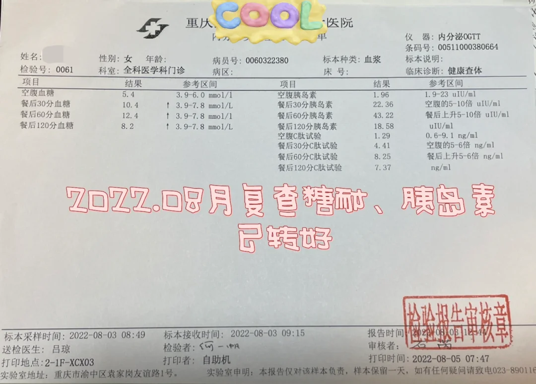 从这次的复查情况来看,已趋于稳定。通过四年密切监测各项指标,我对自己的饮食比例、运动频率已全部摸清楚。未来我大概两三年才会考虑复查一次糖耐、胰岛素了。其他指标半年一年复查一次。