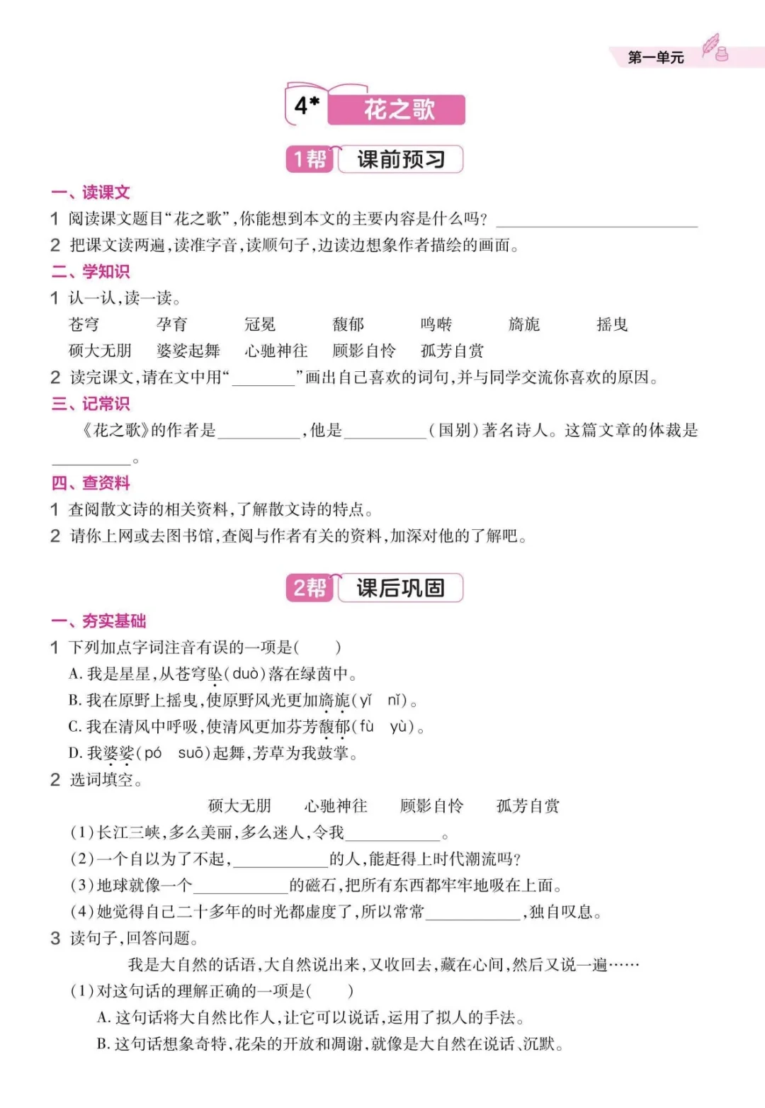 1.朗读课文,感受语言的节奏感和音韵美。