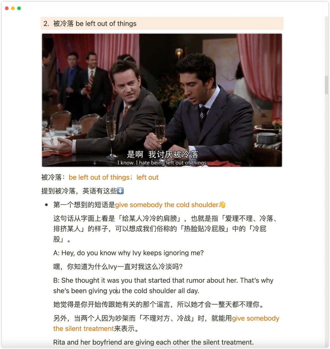2️⃣ 表达 “leave someone in the cold” 的意思是 “把某人排除在一个团体或活动之外,冷落某人”。