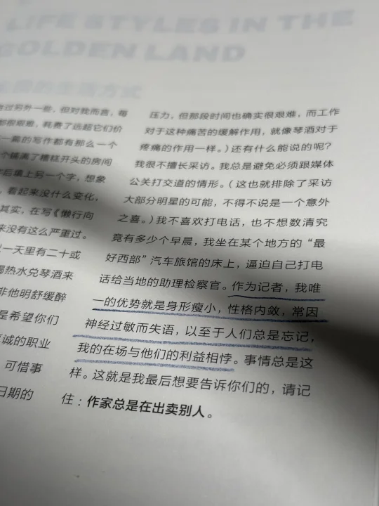 「作为记者,我惟一的优势就是身形瘦小,性格内敛,常因神经过敏而失语,以至于人们总是忘记,我的在场与他们的利益相悖。」