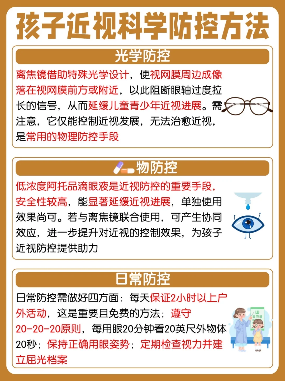 还记得上学期开学前给闺女整理开学装备,收拾新文具,发现她捏着笔写名字时,居然把练习本往脸跟前挪了又挪,连鼻尖都快碰到纸了!我赶紧抽走本子让她看阳台的绿植,她眯着眼睛半天说 “模模糊糊的”,赶紧趁还没上学去做检查,结果说眼轴比上次查的时候长得快,一想到开学后作业多、网课也少不了,这度数不得往上涨? 做了好多功课,近视不只是单纯的看电子产品导致的,当发现孩子近视,要尽早做近视防控。但近视防控方法也要科学搭配:目前公认的科学的防控方法是:离焦镜 + 0.01% 低浓度阿托品滴眼液+日常健康的用眼习惯 ✅光学防控 先说说离焦镜,之前总以为和普通眼镜没区别,也是去配了才知道,它能让视网膜周边的成像更清晰,不像普通眼镜那样容易让眼轴偷偷长,白天闺女上学、写作业都戴着,看黑板比以前清楚多了,也不用老揉眼睛歪脑袋了。 ✅💊物防控 低浓度阿托品滴眼液是目前guo家wei一上市的儿童近视防控💊guo家认可,我才敢给娃用!每天睡前滴一滴就行,独立包装不含防fu剂,所以更适合单次使用。卫生有保障,也不用担心长时间使用防fu剂伤害孩子眼睛。刚开始我还担心有ci激,没想到孩子说滴进去凉丝丝的很舒服。关键是效🍊能打,说是能延缓 60% 的近视进展,坚持用还能慢眼轴增长,正好跟离焦镜搭着来 —— 白天离焦镜,晚上滴阿托品儿童滴眼液,1+1>2双管齐下比单靠一样强!除了这俩 “主力”,日常防控也没敢松! ✅日常防控 ①  每天确保2小时以上户外活动(重要且免费的方法!) ② 遵守20-20-20原则:每用眼20分钟,看20英尺外物体20秒 ③保持正确用眼姿势:眼睛离书本一尺,胸口离桌一拳 ④ 定期检查视力:建立屈光档案,及时发现变化 现在每天雷打不动两小时户外活动,周末就带去户外放风筝、打羽毛球,家里的台灯全部换成护眼灯,写作业 20 分钟就提醒她歇会儿,电子设备更是严格管控,除了上网课根本不让碰。 开学后也要坚持,不能两天打鱼三天赛网,希望后面眼轴速度不要增长太快就足已,要是你家也有类似的情况,可千万别大意,早点行动起来,总没错的。 儿童护眼近视儿童近视防控儿童视力检查儿童近视如何预防阿托品儿童滴眼液低浓度阿托品滴眼液健康科普健康知识科普