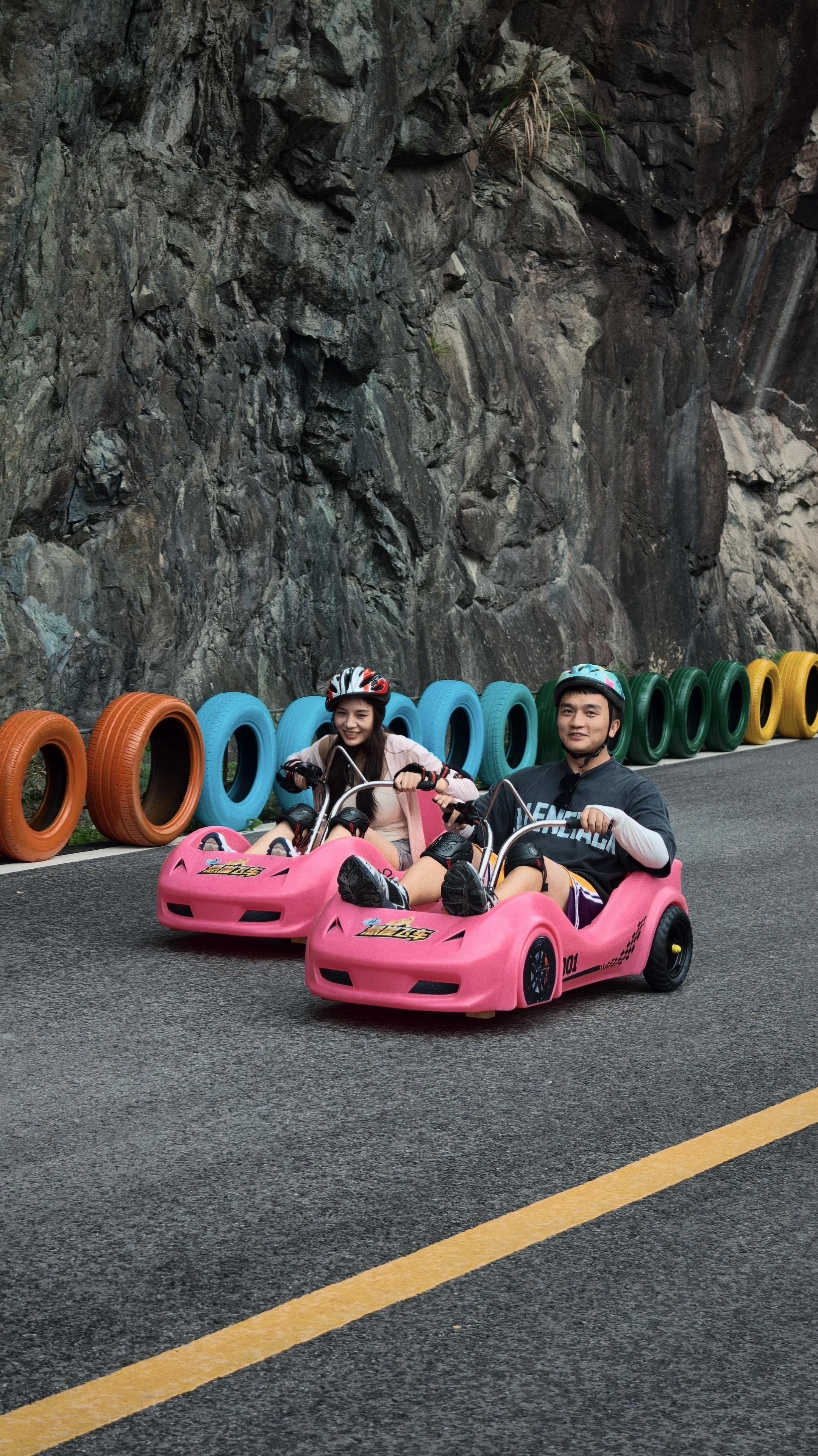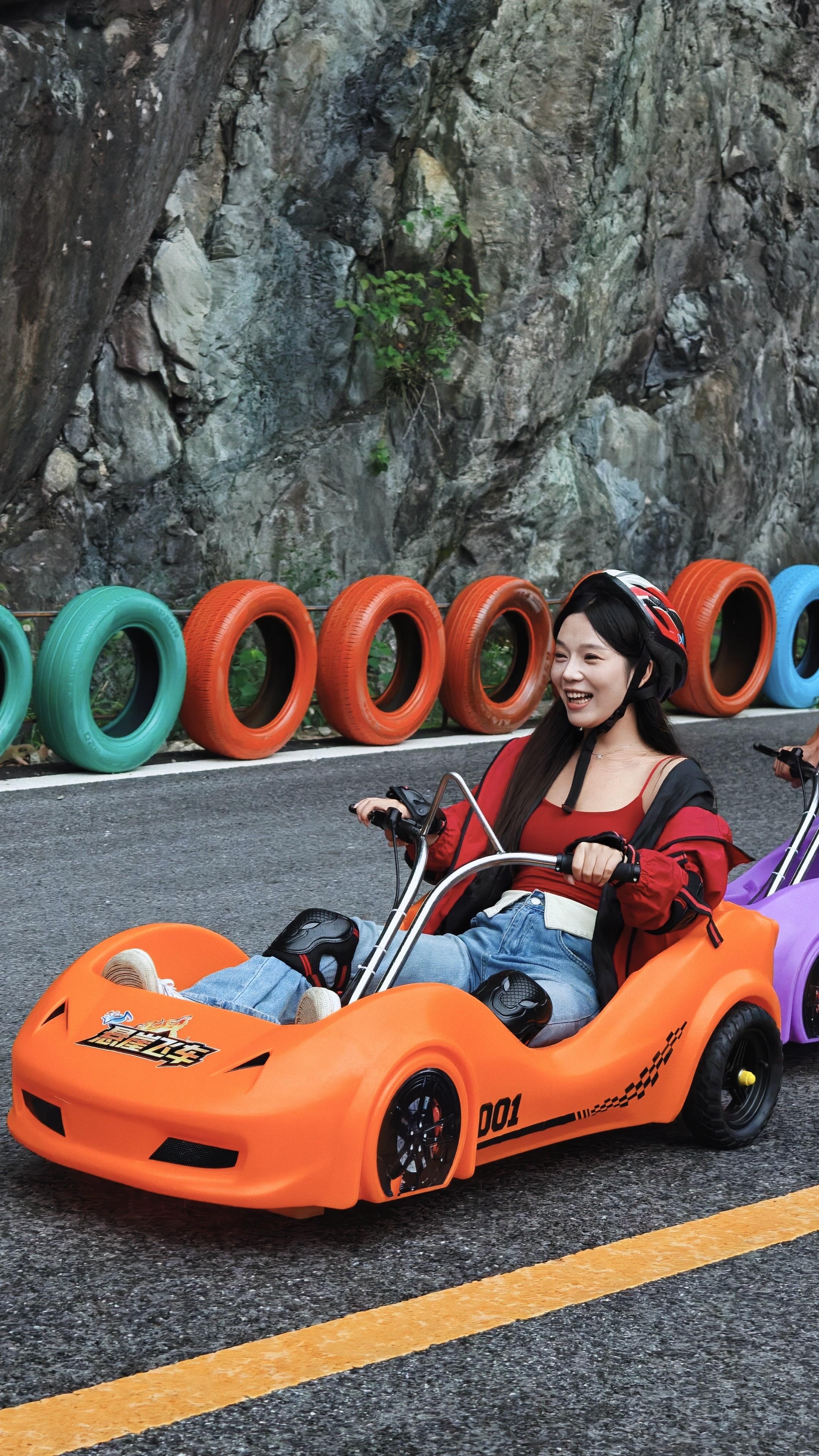 国庆长假在大觉山悬崖动车体验不一样的拍照乐趣 🚞 今天C位主角——大觉山悬崖动车 「机位指南」:半山腰观景台长焦压缩空间感,让轨道如巨龙缠绕绝壁 「最佳时间」:下午4点阳光斜射时,车厢玻璃反光与岩壁冷暖对比超震撼 特别是在日落的时候 悬崖动车披着夕阳在峭壁间划下光的轨迹 🎯 四大高能彩蛋项目 1️⃣蹦极·自由落体美学 ► 连拍模式开启!从纵身跃起到绳索绷直的3秒动态全记录 ► 特写弹跳瞬间扭曲的表情包(危险项目请在专业指导下进行) 2️⃣太空飞艇·科幻片现场 ⭐在飞艇侧面拍摄穿梭在群峰之间 宛