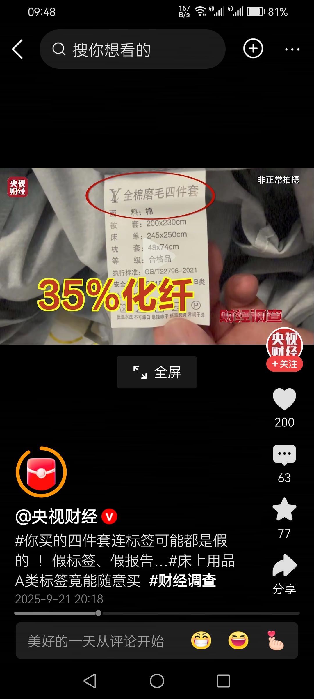 这年代,还有什么是不能造假的!只要是人为有操作空间的,有操作条件的,有操作背景的,不管是食物还是衣物床品,衣食住行各方面,只要不是立马生产出来的,其实每个环节都有可能被造假,甚至包括买卖?这一切的核心,无非都是为了一个“利”字,这也是大多数商人的本质,“大商人”更是如此。 回想这些年报道的造假事件,还少吗,一点也不少,那为啥到现在各方还是这样,你方唱罢我登场的样子。其实要想缓解这种情况,是非常非常困难的,毕竟这是跟人性对赌,就算立法也有可能效果甚微,毕竟没有事情没有败露的时候,没有成为典型的时候,别人也有可能不会当回事,另外,如果造假成本太低的情况下,犯罪惩罚太低的话,都会严重影响行为风向。 这次造假棉纺织品的情况,也不过反映了这种肮脏交易背后的冰山一角甚至是沧海一粟。 首先,生产环节上,原料是否合格,这很难说,毕竟普罗大众也管不了采购。 其次,吊牌是谁生产的,标签是谁贴的缝的,谁能保真,这个也只能凭良心,这也很难判断真假。毕竟,检测结果都可以不保证真伪,这不是搞笑来的吗?做为检测机构,都不对检测结果定论和负责,还能随机应变,试问,谁敢信他们出具的证明? 再者,价格这方面,大家都知道出厂价一般都是迷,想赚多少完全是商家说了算,而对于一般价格的商品,大家可能也没那么追究各方面,这就给了别人可乘之机,毕竟大家潜意识也觉得便宜无好货很正常,当大多数人都觉得很正常的时候,它就可能成了真的正常,所以这才是那些造假者能够理直气壮的原因之一。羊毛出在羊身上,当羊都不在乎或不自知的情况下,结果就可想而知。 至于产品是否符合标准,这个又有点玄学了,首先检测一般都是采取抽样法,而不可能是全检,尤其是货量惊人的情况下,那样也不现实,其次,就算检测合规,到手货也有可能不对版,这还是良心问题。 一个有良心一点的商户或企业,他们自然知道每个环节应该做好怎样的监督和品控,不会做侥幸的事,但这样的企业或商户,归根结底可能也不是那么多的,也不是那么容易做的,尤其是铺子铺大了之后,管理生产环节变多了之后,人变多了之后,就更容易出问题。 一个社会的消费环境好不好,其实说白了就取决于供求关系中的信任匹配度,消费者信得过生产者的生产,生产者信得过消费者的消费,这就是最简单也最理想的商业环境,而不是更接近零和博弈的情况。而这种信任的建立,一个最简单的检验结果就是心理预期。而不同人的心理预期都是不一样的,但基本都符合“供给需求曲线”大模型。 说白了,这跟前面的预制菜那种东西很像,消费者总归会找到价格与心理的平衡点,最终成为一种“造假”就可能看上去不再是那么邪恶的现象。这也算是人类性质本身所决定的了,毕竟人的精力有限,有时候真管不了太多。 举个最简单的例子,两件一模一样的衣服,普通商家有良心一点,他们卖30块,某不良品牌商家良心缺一点,他们卖300块,试问,你会买哪家的?应该两者都有,前者可能会觉得物超所值,后者可能会觉得物有所值,这两种情况,都不会轻易让他们跟商家对立,这就成了“共赢”。而实际结果也是两者都为真,除非两种商家互相搞出什么事,否则大概率会是大家有钱一起赚的“好局面”。 所以说事情都不能只看表面,抵制这些行为最好的办法就是要么不买,要么慎重买,时间最终还是会挑选出真正的良心价和良心人。而那些不良人和不良心,终归会慢慢淘汰在时间历史长河中。