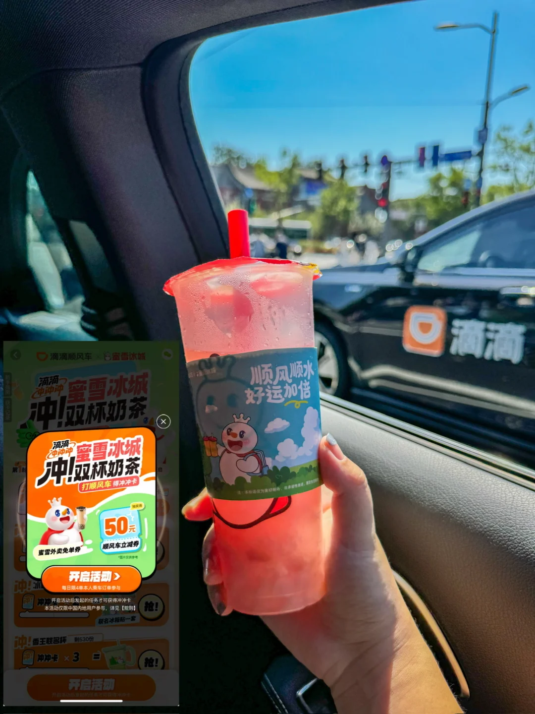 最近滴滴顺风车和蜜雪冰城一起做活动啦(双厨狂喜