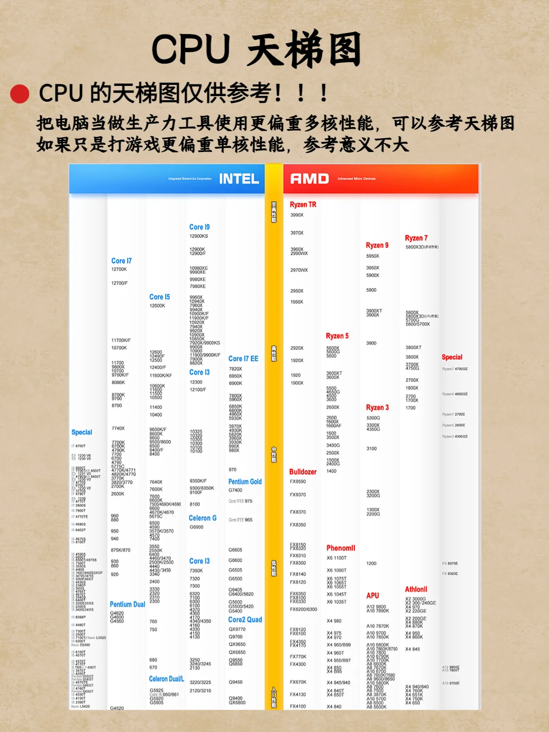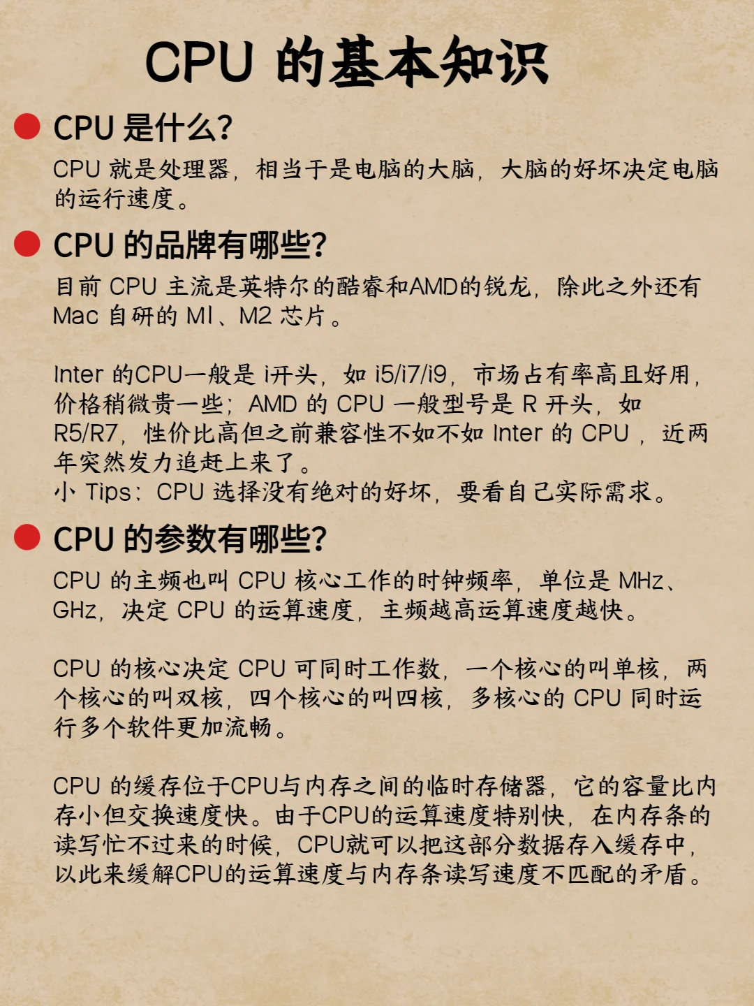 今日数码知识分享:CPU 1. CPU 有哪些参数? 2.CPU 有哪些品牌? 3.CPU 型号后面的后缀是什么意思? 4.CPU 的性能天梯图有什么用? 感谢大家的关猪与收藏,我会加油做笔记的ღ( ´・ᴗ・` )