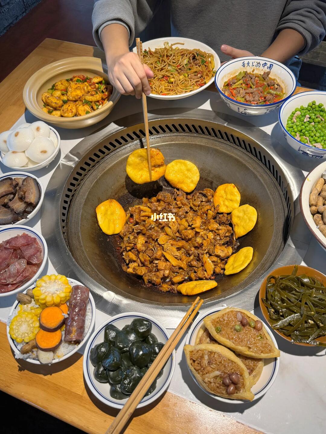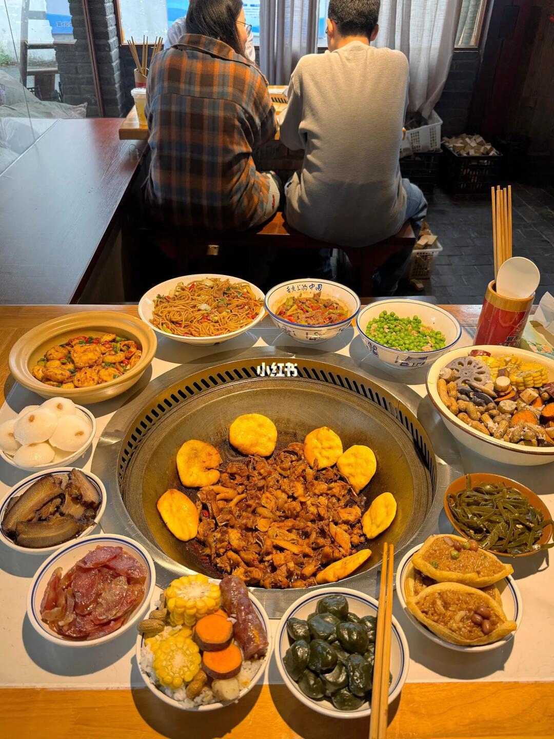 晚上五六点发现店里店外竟然都坐满了,我们点了柴火鸡、柴火饭、等满满一大桌,服务员现炒的,很有烟火气!鸡肉吃得出来是农家土鸡,鲜嫩入味!锅边贴几个玉米饼,蘸着汤汁真的绝了!还有各种炒菜和小吃都没踩雷……老板真的专心在菜品上做研究每个都好绝!!
